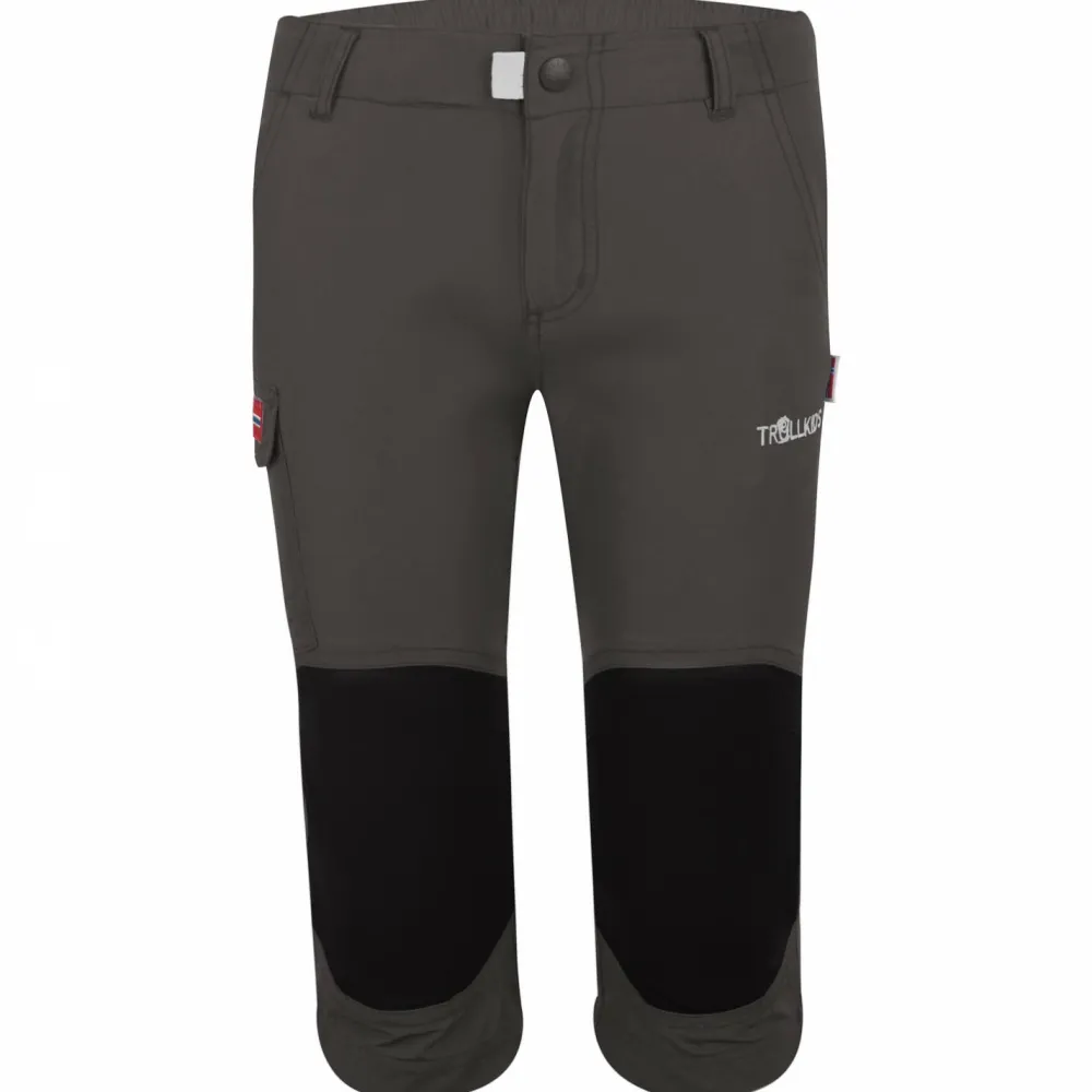 Die Kid’s Hammerfest 3/4 Pants von Trollkids ist eine pflegeleichte und strapazierfähige Trekkinghose für Kinder, die so einiges aushält, wenn man draußen unterwegs ist.Das robuste Gewebe der Hose ist leicht und liefert daher ein unbeschwertes Tragegefühl. Der Stoff der Hose hat einen weichen textilen Griff und zeigt sich besonders resistent gegen oberflächliche Verschmutzungen. An Knien und Gesäß sorgen Verstärkungen aus robustem Stretch-Gewebe für Schutz gegen Risse und Löcher im Stoff. So wird die Hose zu einem langlebigen Begleiter bei allen Outdoor-Abenteuern.Der Bund der Hose lässt sich auf der Innenseite durch einen integrierten Gummizug und einen Knopf in der Weite regulieren.Ob Wandern, campen oder draußen spielen – die Kid’s Hammerfest 3/4 Pants passt immer!