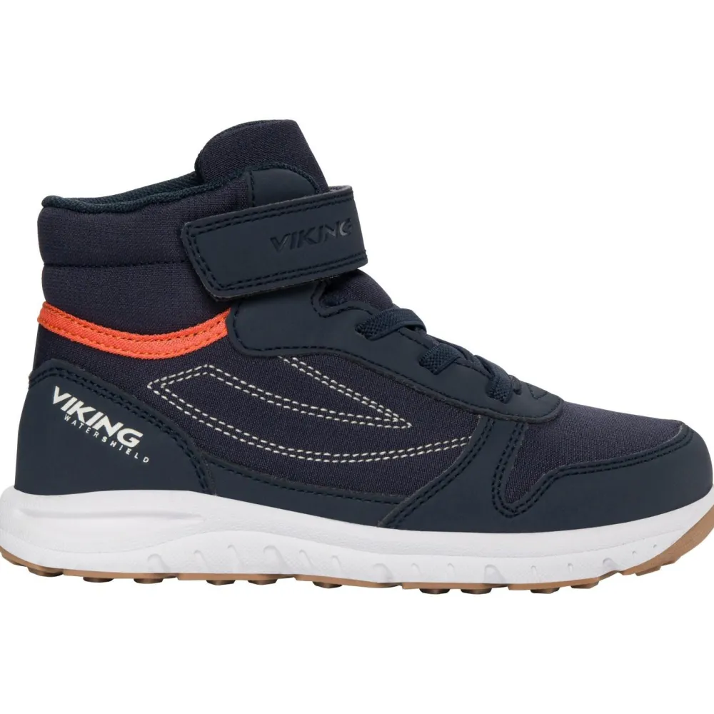 Die Kid’s Hovet Mid WP Multisportschuhe von Viking reichen bis über die Knöchel und sorgen damit für angenehme Stabilität beim Laufen. Gleichzeitig schützen die wasserdichten Schuhe bestens vor Nässe und halten die Füsse an Regentagen trocken.