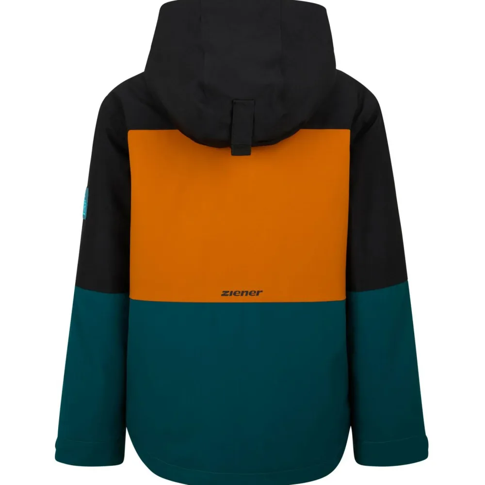 Mit der Boy’s Alim-Z von Ziener geht’s warm, trocken und stylisch durch den Winter! Die wattierte Skijacke bietet alles, was aktive Kids brauchen: eine verstellbare Kapuze nach DIN EN 14682 mit hohem Kragen, eine Brusttasche mit Reißverschluss, Skipasstasche und elastische Ärmelinnenbündchen für optimalen Schutz. Das wärmende Rückenfutter sorgt für extra Komfort bei tiefen Temperaturen.