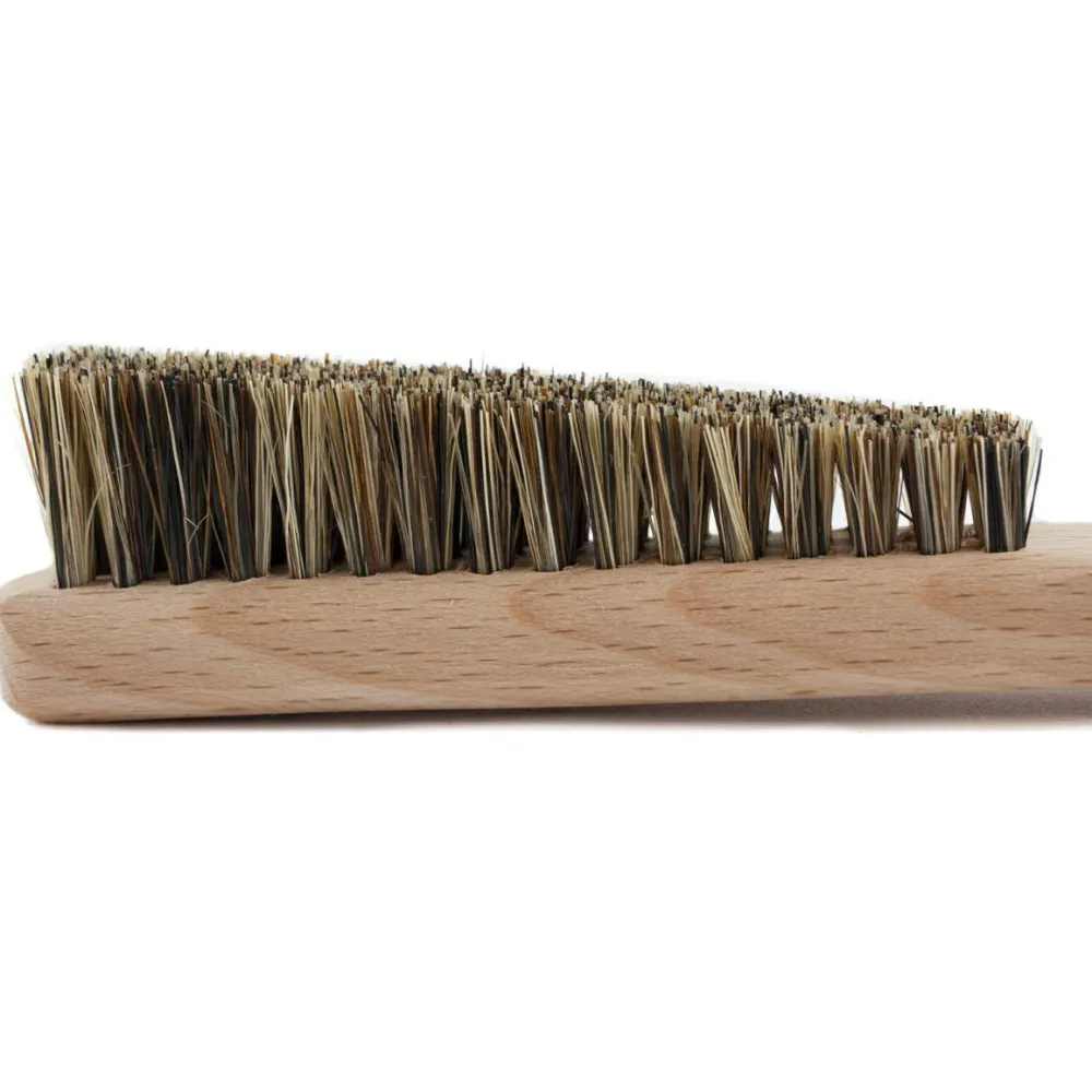 Die Kletterbürste Albarracin von Mantle besteht aus zertifiziertem Buchenholz und Schräg angeordneten Wildschweinborsten und wird in Deutschland produziert. Sie eignet sich hervorragen zum Reinigen von kleinen Spalten und Löchern.