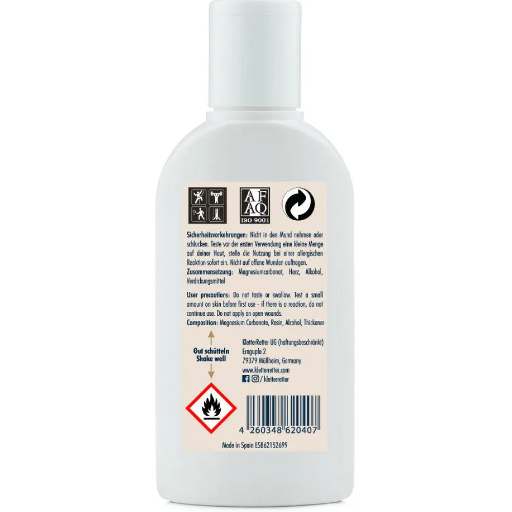 - Inhaltsstoffe: Magnesiumcarbonat, Harz, Alkohol (>70%), Verdickungsmittel