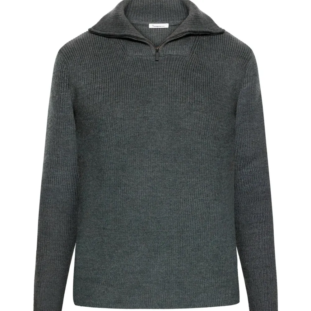 Mit dem KnowledgeCotton Apparel 1/2 Neck Zip Merino Wool Rib Knit startest Du entspannt in den Tag. Der praktische halblange Front-RV erlaubt Dir schnelles An- und Ausziehen sowie flexible Belüftung – ideal bei Temperaturschwankungen am Morgen. Die Rippbündchen schließen sauber ab und verhindern Zugluft; der Stehkragen schützt zusätzlich vor kühlem Wind.