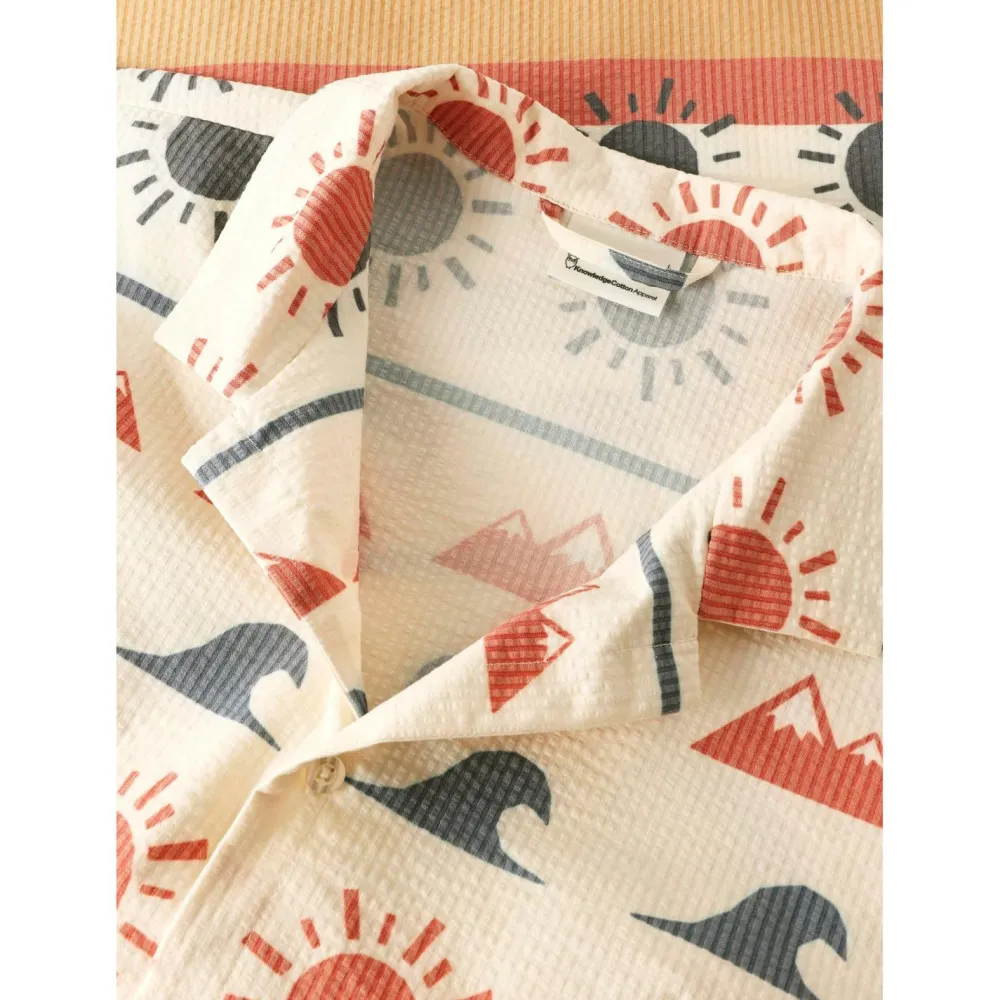 Das Box Fit Short Sleeved AOP Seersucker Shirt von KnowledgeCotton Apparel macht an warmen Tagen richtig gute Laune. Es ist atmungsaktiv, schnelltrocknend und stretchy. Die Materialzusammensetzung des Hemdes enthält 27 % recyceltes Polyester. Der All-over-Print macht Lust auf Sonne, Strand und Meer. Und wenn das Meer nicht um die Ecke ist, kannst Du es mit dem Hemd dennoch nah bei Dir tragen. Kombiniere das Hemd zu vielseitigen Outfits.