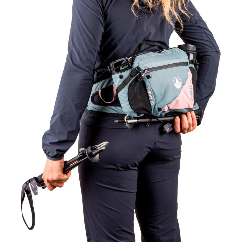 Die Swift von Kohla ist eine praktische und äußerst sportliche Hüfttasche fürs Biken, Langlaufen und für schnelle Wandertouren! Ihr funktionales und zuverlässiges Hauptmaterial wird durch die ergonomische Konstruktion und die sinnvollen Details perfekt ergänzt. Das geräumige 5-Liter-Hauptfach wird von einem integrierten RV-Fach und zwei verstaubaren Flaschenhalterungen komplettiert. Der ergonomische Hüftgurt mit und atmungsaktivem Rückenteil sitzt auch bei voller Bewegung passgenau und sicher. Kleine aber feine Details wie der elastische Kordelzug für Stöcke oder Textilien und der Tragegriff machen die Swift Hüfttasche noch komfortabler und variabler!