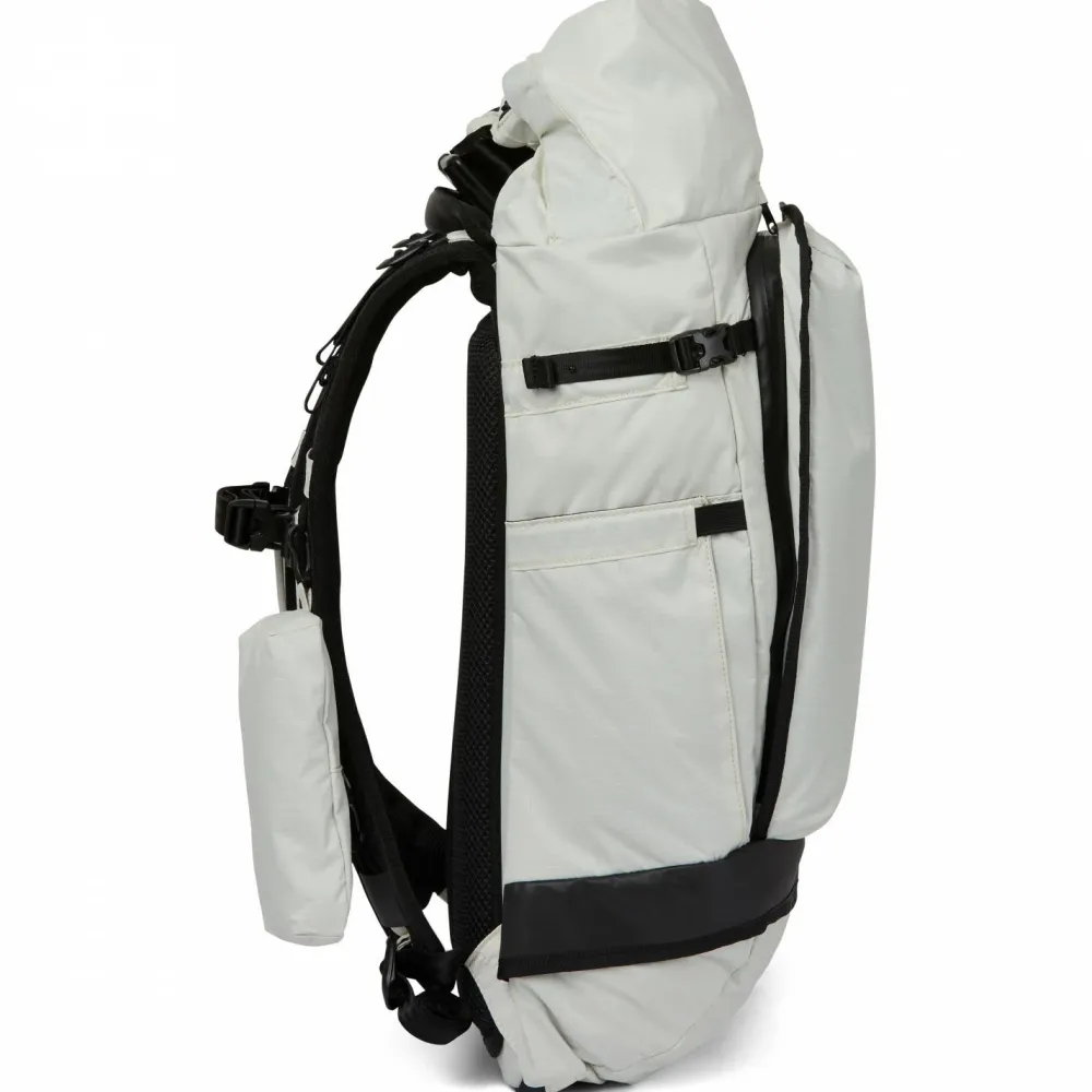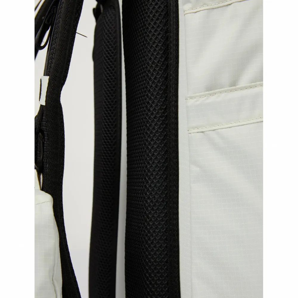 Ein weiteres Highlight des Rucksacks ist der Oberstoff, der aus pre-consumer recyceltem Nylon hergestellt ist. Es handelt sich dabei um reißfesten und strapazierfähigen Stoff. Er hat eine wasserbasierende PU-Beschichtung und ist mit einer PFC-freien, wasser- und schmutzabweisenden DWR-Imprägnierung ausgestattet. Außerdem ist das Innenfutter aus recycelten PET-Flaschen hergestellt.