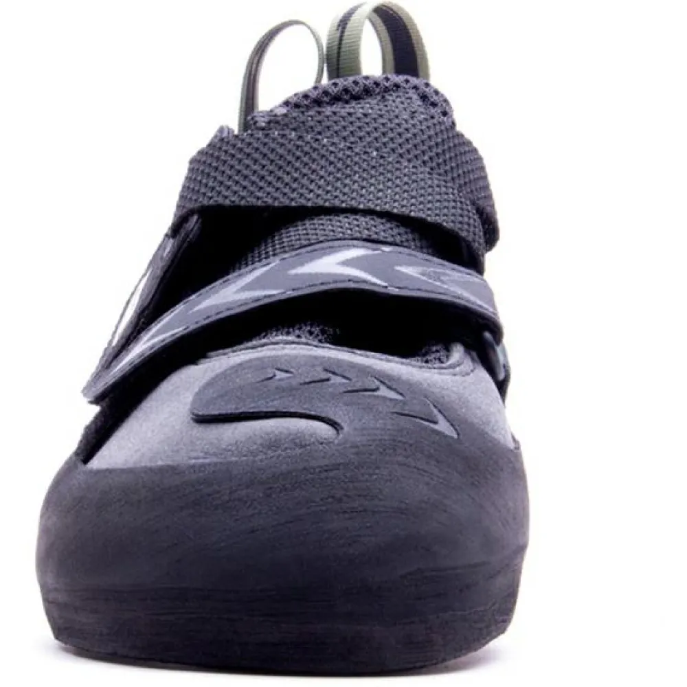 Das Obermaterial ist aus robustem Synthratek VX Material, das dem Fuß Stabilität und Flexibilität beim Klettern liefert. Der Klettverschluss gibt den Füßen den nötigen Halt im Schuh, damit man sich beim Klettern und Bouldern voll und ganz auf seine Route konzentrieren kann. Die Materialverstärkungen an der Ferse und im Zehenbereich bieten Abriebschutz rundum und machen die Kletterschuhe langlebiger. Mit der griffigen Außensohle meistert man jede Passage. Die zwei Schlaufen erleichtern das schnelle An- und Ausziehen der Kletterschuhe.