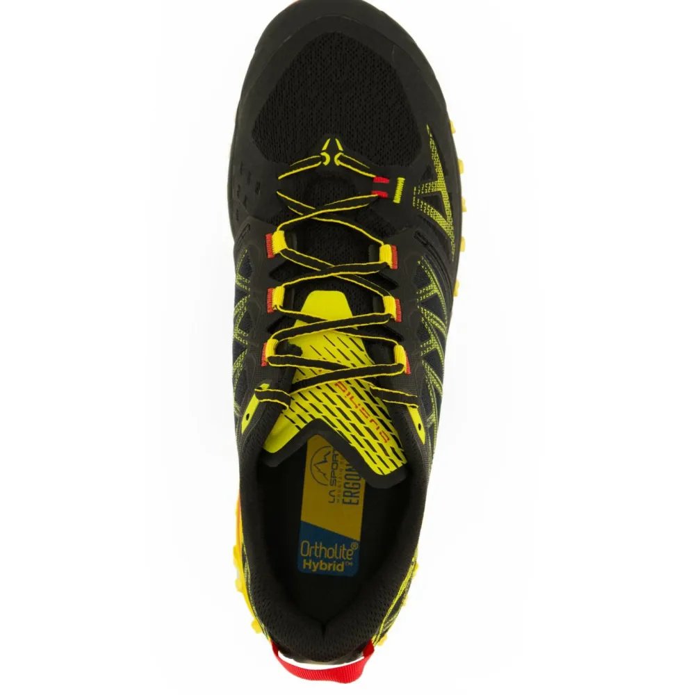 Bei dem Material der Trailrunningschuhe legt La Sportiva viel Wert auf die Stabilität Deiner Füße. So kannst Du sie präzise aufsetzen ohne zu verrutschen. Die Seitenteile sind mit besonders atmungsaktivem Mesh ausgestattet. Das sorgt grade bei langen Läufen für starke Ventilation und verhindert zusammen mit der Ortholite-Einlegesohle die Entstehung unangenehmer Gerüche. Abgerundet wird das Design der Bushido lll von den Anziehschlaufen und den recycelten Schnürsenkeln. So kann die Laufsaison kommen!