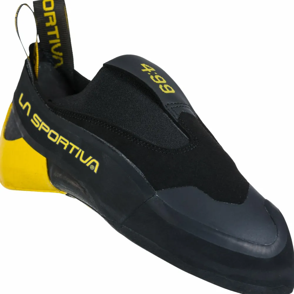 Speziell für’s Speedclimbing entworfen! Der Kletterschuh Cobra 4.99 von La Sportiva ist der perfekte Begleiter für Wettkampfsituationen. Er überzeugt durch besondere Leistungsfähigkeit sowie durch sein geringes Gewicht. Der Grund hierfür liegt in den gewichtsoptimiertem Materialien sowie der Slipperbauweise der Schuhe. Das Obermaterial besteht bei diesem Modell aus Mikrofaser und passt sich perfekt an die persönliche Fußform an. Hierdurch sitzen die Schuhe wie eine zweite Haut am Fuß und werden so auch höchsten Ansprüchen gerecht. Besonders praktisch: Das Obermaterial ist gleichzeitig atmungsaktiv und sorgt so dafür, dass in den Schuhen entstehende Feuchtigkeit schnell nach außen abgegeben werden kann.