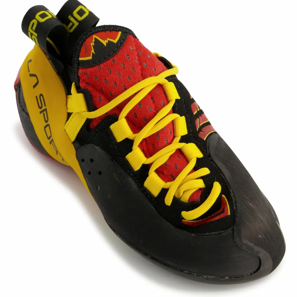 Dank des P3-Systems, leiern die Genius Kletterschuhe weniger schnell aus und ihre sehr gut anpassbare Schnürung kann auf die jeweilige Situation perfekt eingestellt werden und sorgt in Verbindung mit den anderen Technologien auch dann noch für guten Halt, wenn er nicht knall eng sitzt. Der robuste Schaft aus Leder und Mesh ist atmungsaktiv und gleichzeitig widerstandfähig. Mit den Genius Kletterschuhen werden schwierige Klettermanöver zum Kinderspiel!