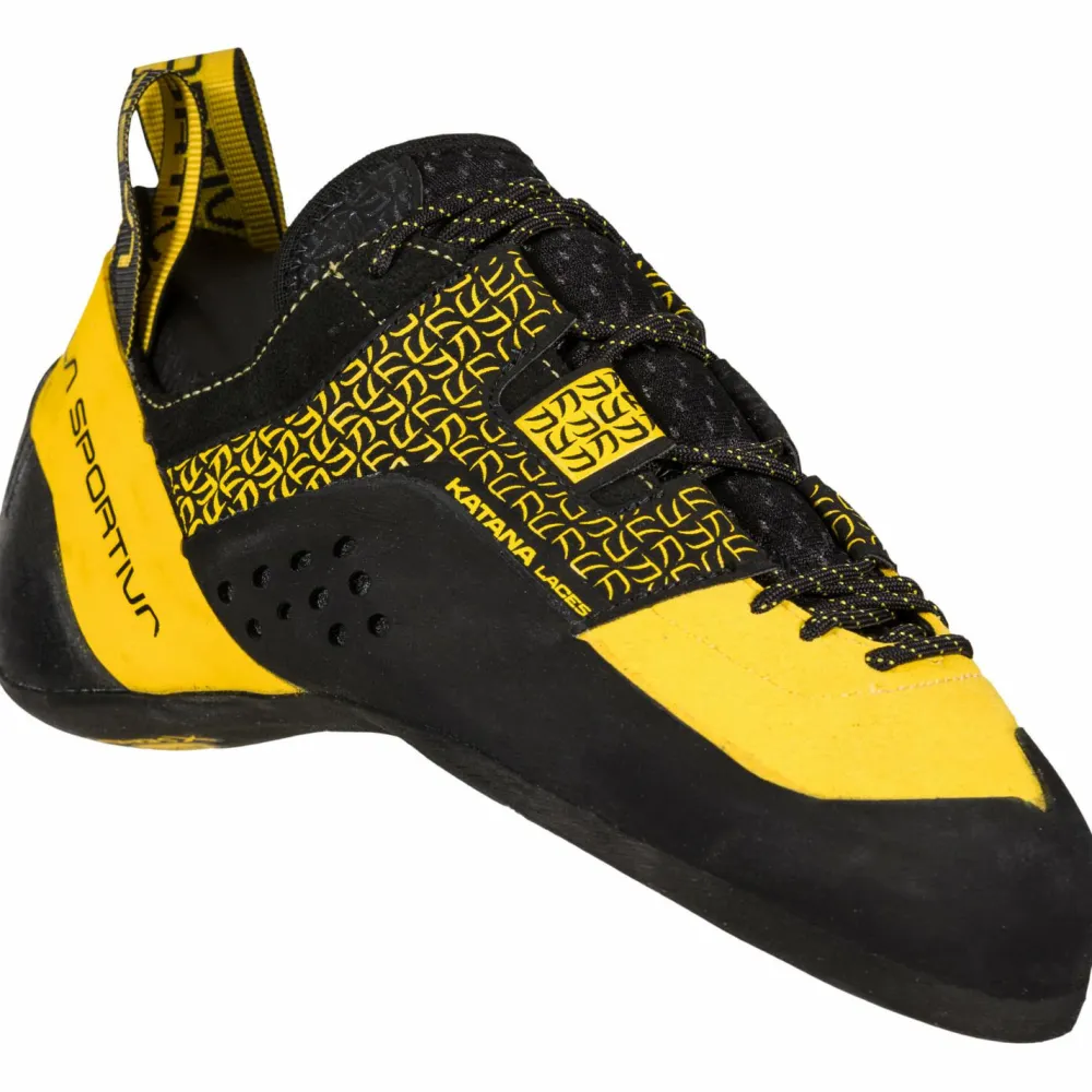 Die Katana Laces Kletterschuhe von La Sportiva haben es in sich! In der Halle und am Fels, in der Vertikale, im Überhang und an der Platte – diese Kletterschuhe sind für alle Kletterer, die Schuhe mit hohem Präzisionsvermögen bei jeder Route suchen. Mit dem hohen Vorspann und dem mittelgroßen Downturn ist für Präzision und Zehenspitzengefühl gesorgt und mit der neuen Fersenkonstruktion hast Du auch den perfekten Grip für Heel-Hooks. Die Schuhe sind dank des Leder-Synthetik-Obermaterials super robust und langlebig. Außerdem kannst Du die Schuhe neu besohlen lassen. Du musst die Schuhe also nicht wegschmeißen, wenn das Gummi der Vibram XS Edge Sohle nach langem Tragen erneuert werden muss.
