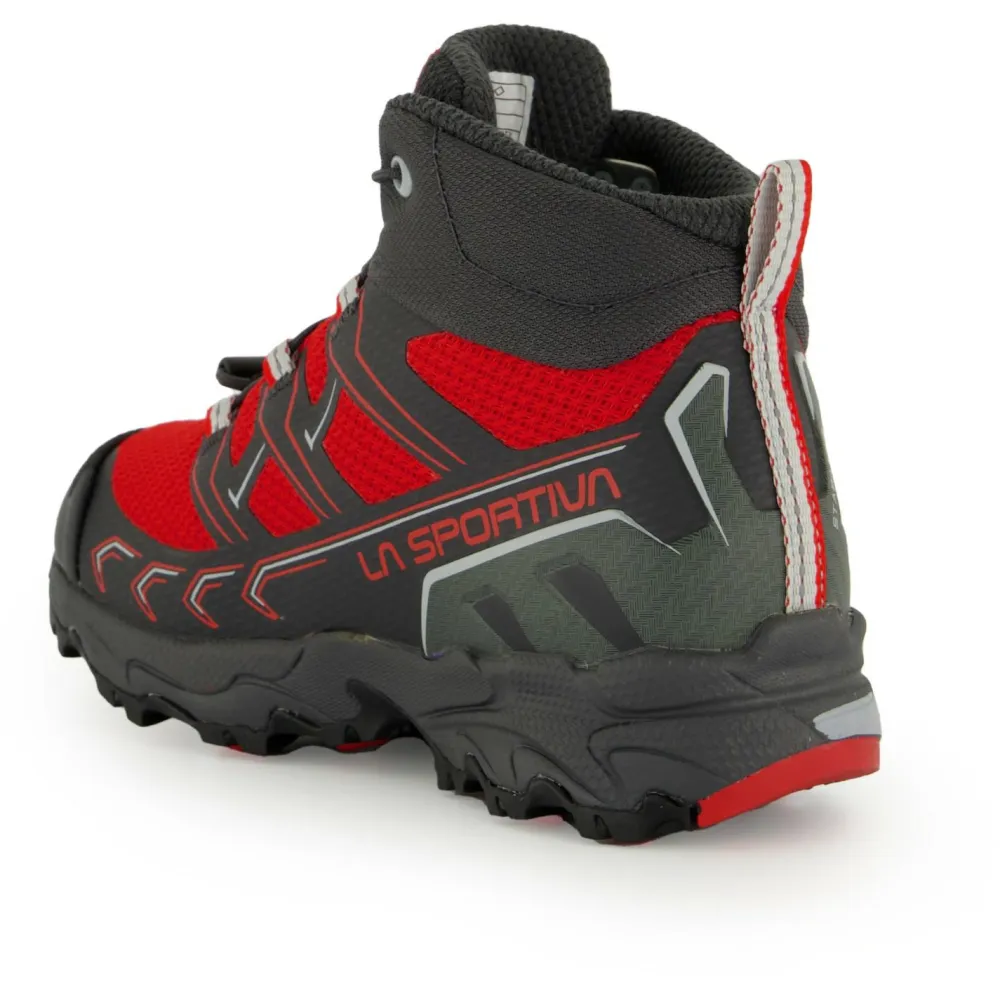 Ob am Berg oder im Alltag, die Wanderschuhe Kid’s Ultra Raptor II Mid GTX von La Sportiva sind robuste Partner für jedes Abenteuer! Dank GORE-TEX Membran sind die Schuhe wasserdicht und atmungsaktiv. Ein Geröllschutzrand und Verstärkungen an Zehen und Fersen schützen Dich vor Steinen und Matsch. Der höhere Schaft sorgt für eine sichere Stabilität im Gelände. Dank dämpfender Zwischensohle genießt Du ein angenehmes Laufgefühl mit natürlichem Abrollverhalten. Die griffige FriXion Laufsohle sorgt für einen zuverlässigen Halt auf jedem Untergrund, selbst bei Nässe. Ideal für die Übergangszeit!