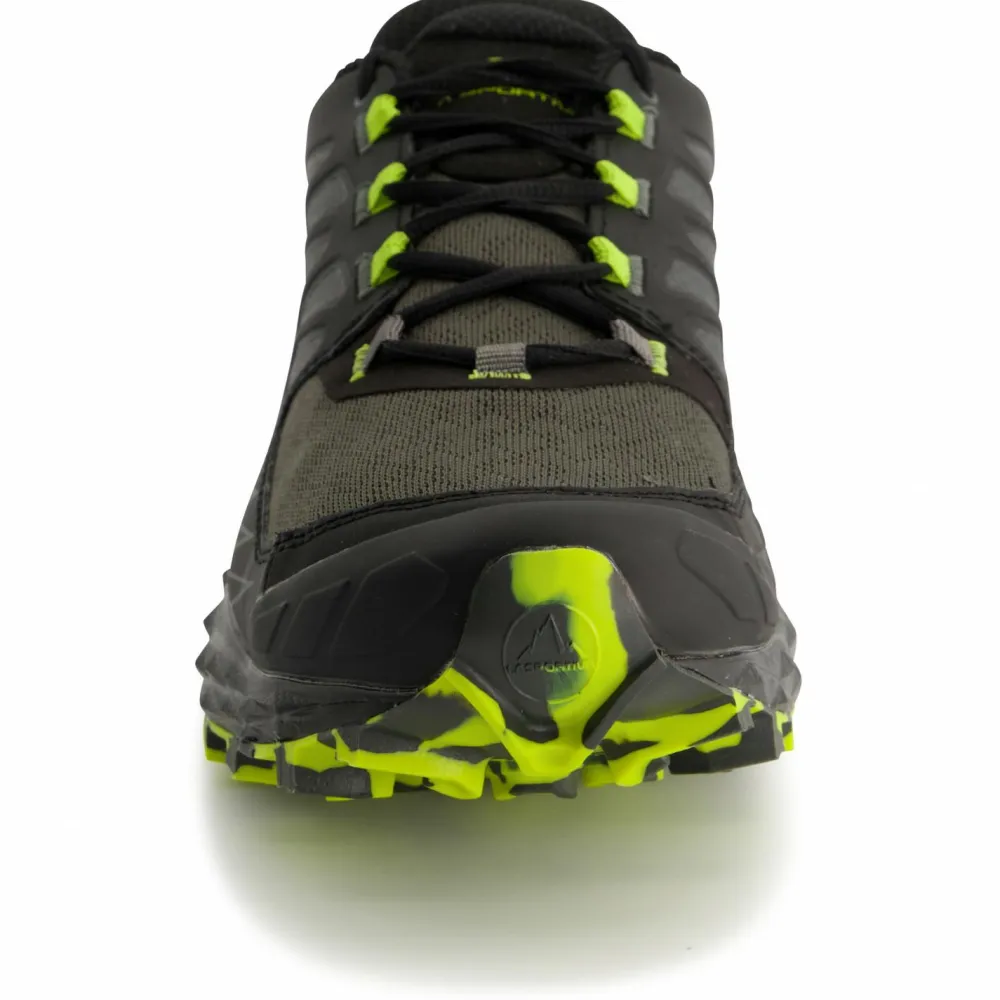 Perfekter Trailrunner für den Winter ? die Lycan GTX von La Sportiva wurden speziell für die kalte Jahreszeit entwickelt. Die Friction Blue Sohle mit Impact Brake System bietet dank der griffigen Noppen auf Eis und Schnee einen sicheren Halt. Die schützende Zehenkappe absorbiert Stöße in rauem Gelände. Der dämpfende Keil in der Zwischensohle rundet das Laufgefühl ab und sorgt für ein komfortables Vorankommen. Dank des GORE-TEX Innenfutters sind die Füße jederzeit vor schlechtem Wetter und nassem Schnee geschützt.