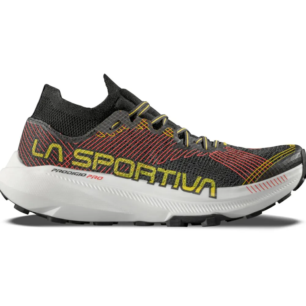 Du bist gerne schnell und effizient in den Bergen unterwegs? Dann sind die Prodigio Pro Trailrunningschuhe von La Sportiva die perfekten Begleiter für Deine kommenden Lauf-Abentuer. Eine hohe Rückfederung und Dämpfung ermöglichen einen optimalen Energiehaushalt beim Laufen. Zudem wirkt das weiche Abrollverhalten schonend auf Gelenke und Knochen. Die ausgeklügelte Technik des Schnürsystems gewährleistet eine feine Anpassung der Schuhe, sodass sich diese individuell an Deine persönliche Fußform anpassen lassen. Sehr wichtig bei holprigen Passagen, um ein Rutschen und damit auch Umknicken zu verhindern.