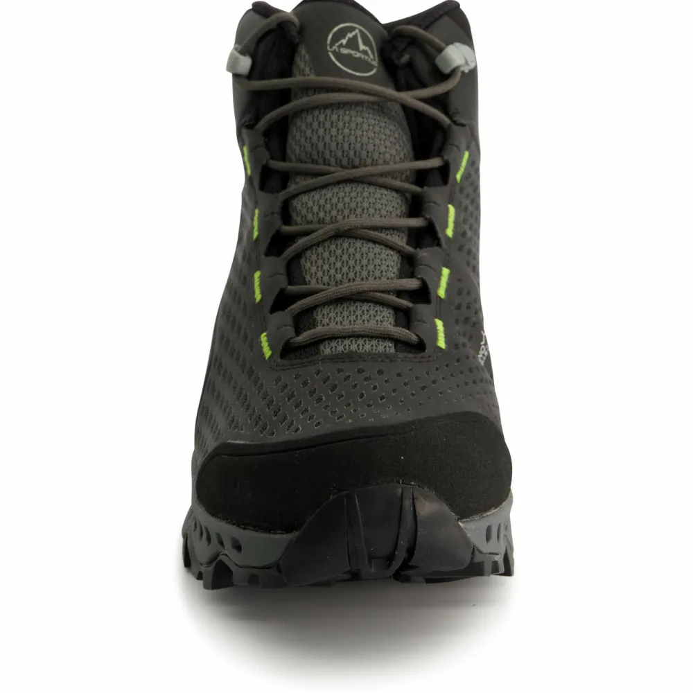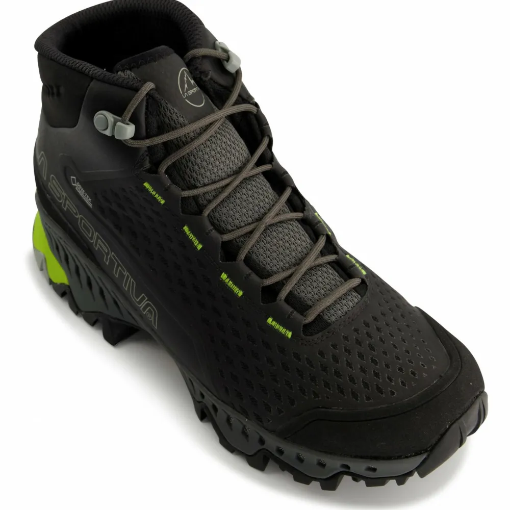 Dank der GORE-TEX Surround Konstruktion kann der Stream GTX Wanderschuh von La Sportiva überschüssige Wärme über die seitlichen Ventilationsöffnungen abgeben. So garantiert der wasserfeste Leichtwanderschuh ein angenehmes und trockenes Tragegefühl bei anstrengenden Einsätzen im Gebirge. Eine ausgeklügelte Sohlenkonstruktion mit dämpfender EVA Zwischensohle und einer griffigen Vibram XS Trek Wandersohle sorgen für einen sicheren Tritt und einen tollen Grip auf den unterschiedlichsten Untergründen. Mit dem halbhohen Schaft ist der Knöchel gut geschützt und das Fußgelenk wird zuverlässig unterstützt. Die Nano-Cells 2.0 Struktur im Schaft ist besonders leicht und atmungsaktiv und ermöglicht eine optimale Performance für alle, die in den Bergen gerne ultraleicht, schnell und sicher unterwegs sind.
