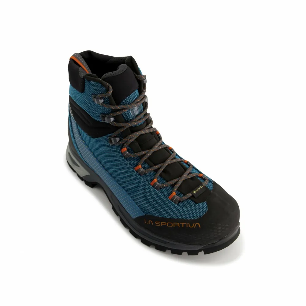 Durch Matsch und Geröll bringt Dich der Wanderschuh Trango TRK GTX von La Sportiva sicher! Er kommt mit einer GORE-TEX Membran daher, die für Wasserdichtigkeit und eine solide Atmungsaktivität sorgt. Das Obermaterial des Schuhs ist abriebfest und strapazierfähig. Mit dem mittelhohen Schaft hast Du eine hervorragende Stabilität im Gelände. Dank Schnürung kannst Du die Passform individuell variieren. Die dämpfende Zwischensohle sorgt für einen hohen Laufkomfort, selbst mit schwerem Rucksack. Die Vibram Laufsohle garantiert Grip und Halt in Matsch, Geröll und unwegsamen Gelände. Verstärkungen an Fersen und Zehen optimieren den Schutz. Ideal für Wandertouren und Trekkingtouren!