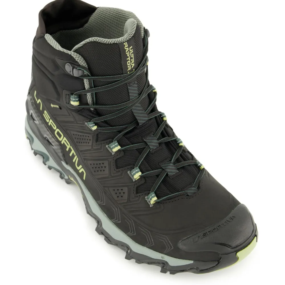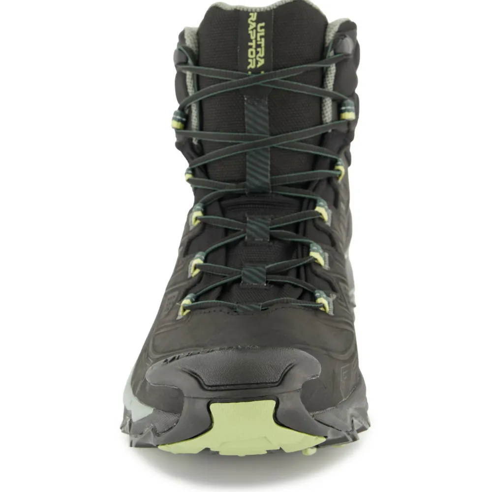 Der Ultra Raptor II Mid Leather GTX von La Sportiva ist der perfekte Schuh für den Speed-Hiking-Einsatz oder spontane Tagestrips in die Berge mit leichtem Gepäck. Seine Gore–Tex Extended Comfort Membran macht ihn atmungsaktiv und wasserdicht. Der sogenannte „comfort collar“, eine weiche, knöchelumschließende Manschette dichtet den Schuh gegen Schmutz und Steine ab und gibt dem Knöchel angenehmen Halt. Die easy-fit-Spoiler sorgen dafür, den Midcut-Schuh zügig und einfach an- und auszuziehen.