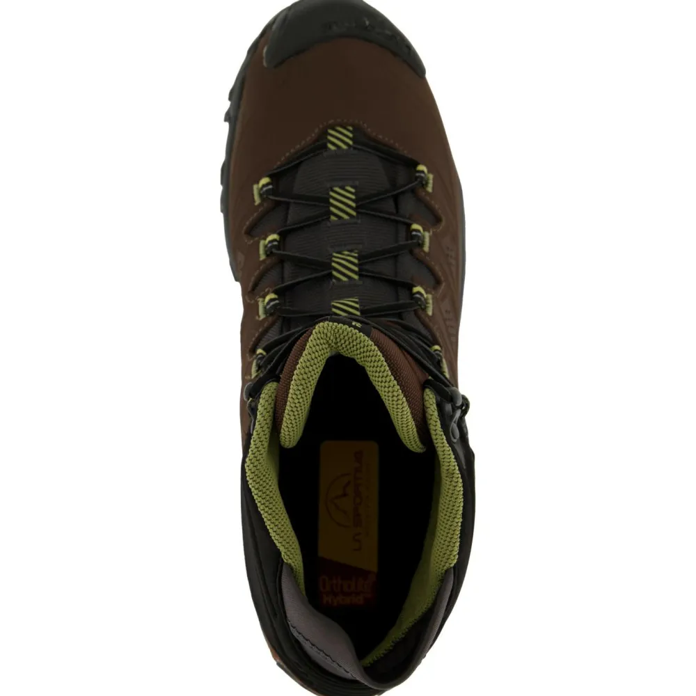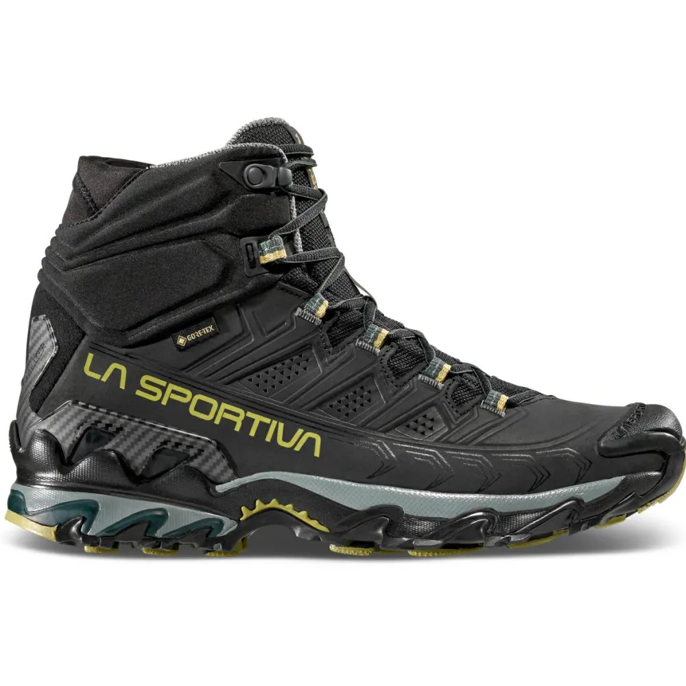 Die Version des Ultra Raptor II Mid Leather Wide GTX von La Sportiva mit Obermaterial aus Nubuk-Leder ist ideal für den Fast Hiking-Einsatz und Exkursionen mit leichter Ladung. Die halbhohen Schuhe sind wasserdicht und atmungsaktiv dank der GORE-TEX Extended Comfort-Membrane. Sie schützt die Füße vor Nässe und Kälte bei jeder Gelegenheit. Der Comfort Collar ist ein weicher Schutzkragen am Knöchel für leichteres Anziehen. Der Schaft legt sich eng ans Bein an, sodass beim Laufen weniger Dreck und Steinchen ins Innere gelangen können.