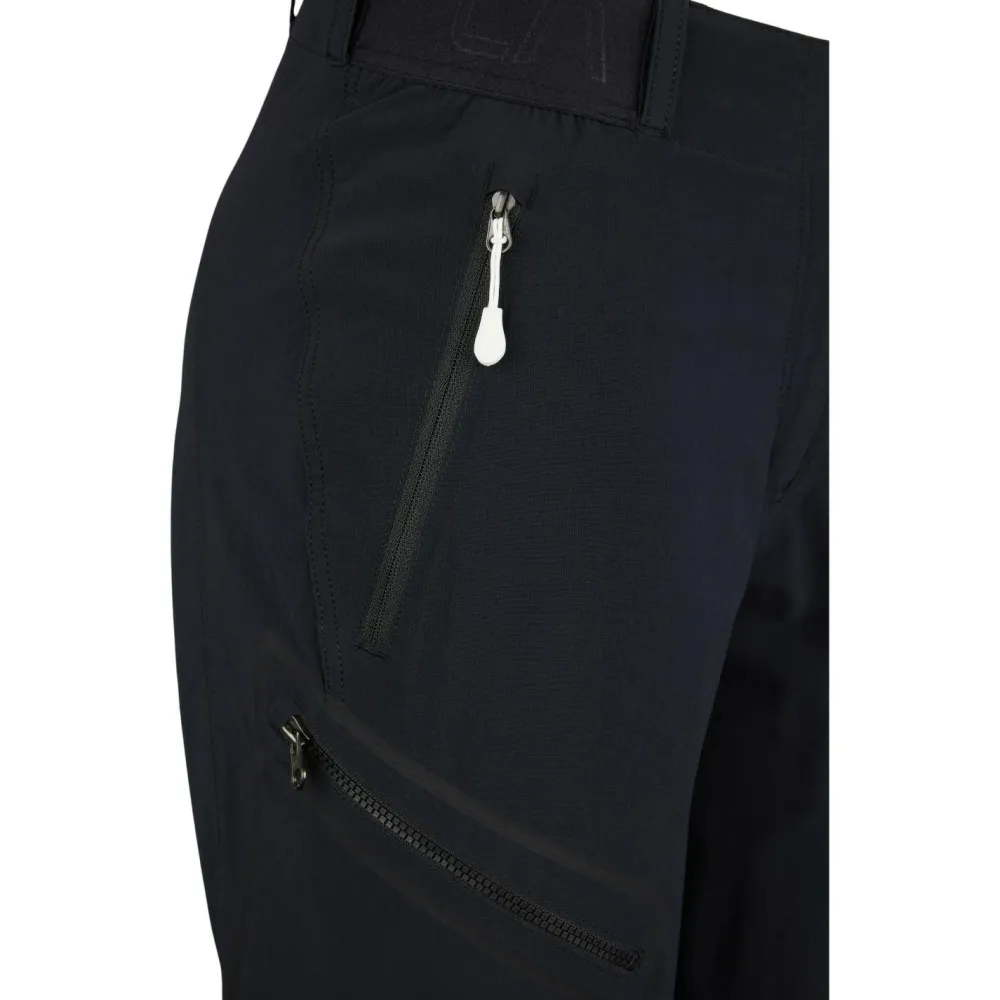 Der teilelastische Bund der Outdoorhose ist flach gearbeitet und ermöglicht Dir das scheuerfreie Tragen eines Rucksacks oder Klettergurts. Die Gürtelschlaufen und flachen Druckknöpfe sorgen für zusätzlichen Halt und Komfort. Die vorgeformten Knie und die Verstärkungen an Knien, Gesäß und Beinabschlüssen bieten Dir maximale Bewegungsfreiheit und Schutz. In den drei reißverschlussgesicherten Taschen kannst Du essentiellen Kleinkram verstauen und hast ihn schnell bei der Hand.