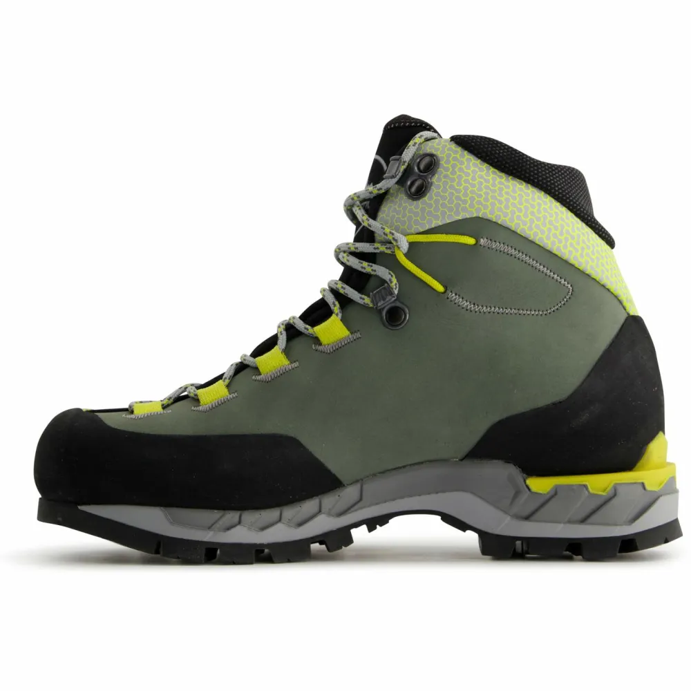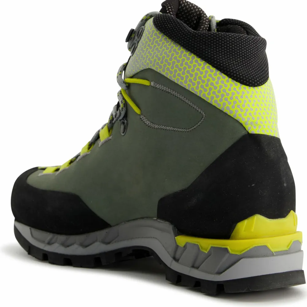 Wasserdicht, robust und steigeisentauglich finden die Women’s Trango Tech Leather GTX Bergschuhe von La Sportiva neue Wege, wo andere Wanderschuhe lieber wieder umkehren. Die ergonomisch geformte Lederkonstruktion mit Mesh-Einsätzen sorgt dabei für sehr gute Haltbarkeit und tollen Tragekomfort. Bergsportlerinnen, Bergretterinnen und Bergführerinnen sind mit den modern designten Bergstiefeln perfekt für anspruchsvolle Einsätze im Gelände ausgerüstet. Das cleane Design mit minimalen Nähten, ein bewegungsfreundliches 3D Flex Bewegungssystem am Sprunggelenk und die komfortable Zwei-Zonen-Schnürung, erlauben angenehmes Wandern im Gebirge. Die wasserdichte GORE-TEX Performance Comfort Membran und eine aufwändige Sohlenkonstruktion mit Anti-Shock Zwischensohle aus Polyurethan, TPU Inserts für Steigeisen und die La Sportiva Cube Sohle vom Sohlenspezialist Vibram, lassen in Bezug auf Stabilität und Grip keine Wünsche offen. Die 4 mm dicke PPE Brandsohle im Women’s Trango Tech Leather GTX ist zusätzlich mit Glasfaser verstärkt und auch von außen sind Zehen und Ferse bestens vor Beschädigungen durch Geröll oder Steigeisen geschützt.