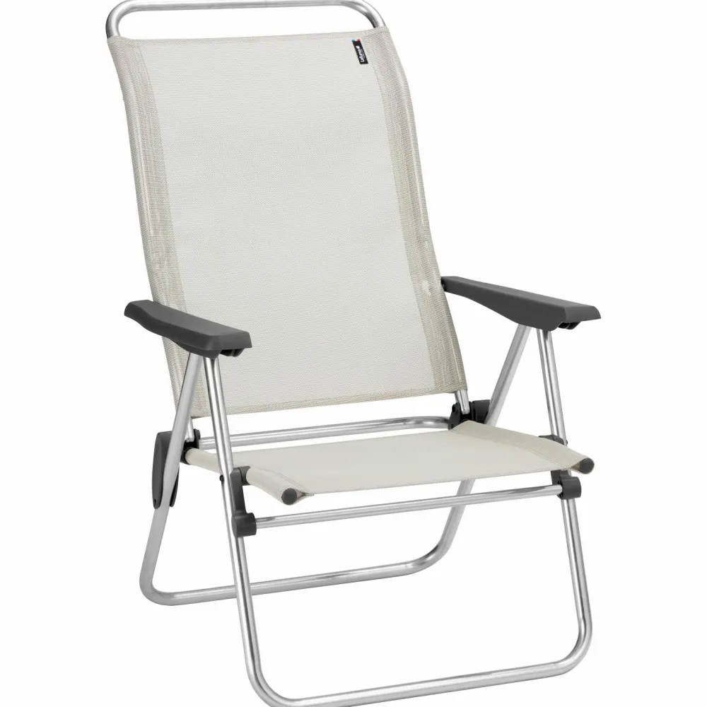Komfort und Funktion für den Outdoor-LifestyleMal so richtig entspannt zurücklehnen – mit dem Alu Low Batyline Iso Campingstuhl von Lafuma! Dieser Camping-Klappsessel hat die Sitzfläche nah am Boden und ist genau deshalb richtig bequem. So sorgt er am Strand, auf dem Campingplatz oder am Swimmingpool für Wohnzimmerfeeling. Die große Lehne trägt dazu ebenso bei wie die sage und schreibe fünf verschiedenen, an der Armlehne einstellbaren Sitzpositionen. Von der Siesta bis zum angeregten Lagerfeuergespräch ist da alles dabei.