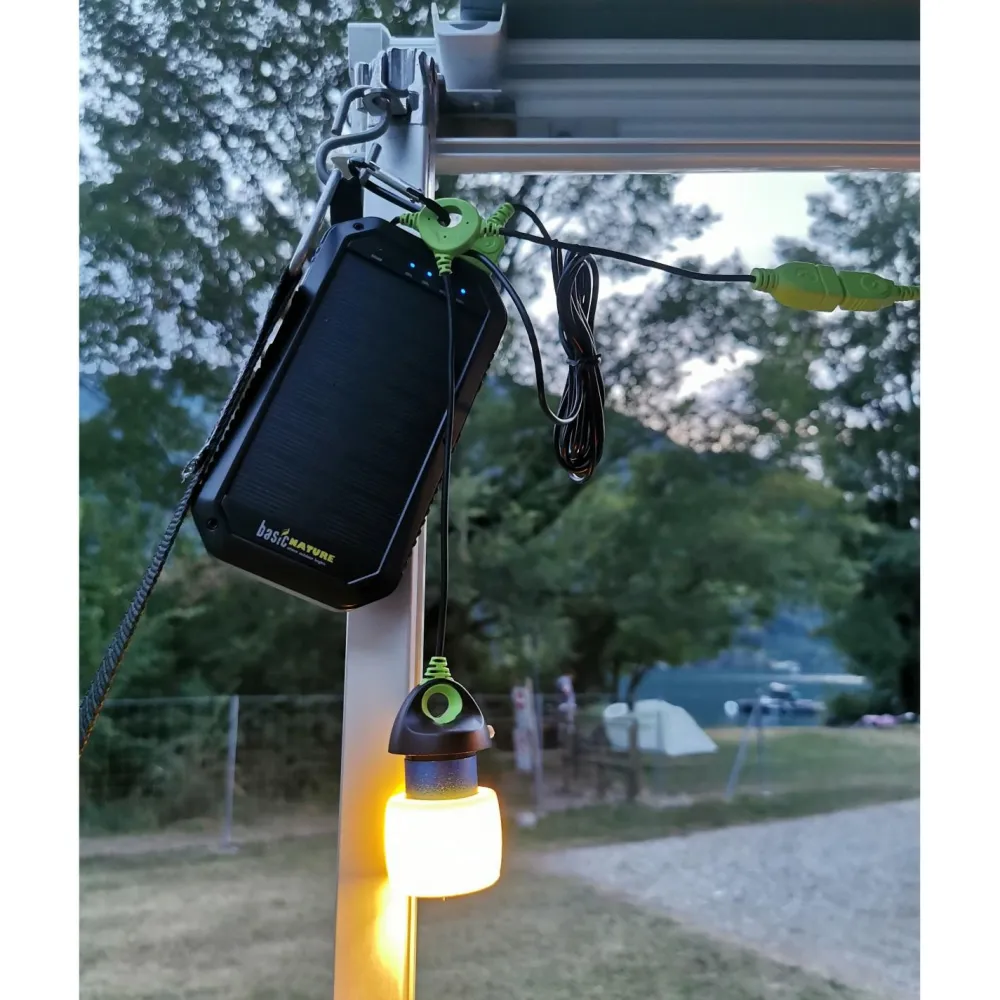 Die LED-Lampe Connectable von Origin Outdoors kann per Powerbank oder anderer USB-Stromquelle betrieben werden. Praktisch ist, dass Du bis zu fünf Lampen miteinander verbinden kannst und damit eine tolle Lichterkette konstruieren kannst. Mit 200 Lumen bei 2 Watt Stromverbrauch ist die Lampe sehr sparsam. Dank Karabiner kannst Du sie überall aufhängen. Ideal zum Campen!