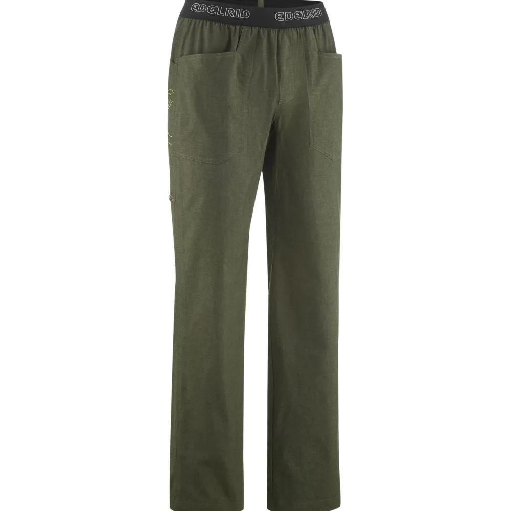 Beim Klettern und Bouldern begeistert die Legacy Pants IV Kletterhose von Edelrid durch tolle Bewegungsfreiheit und erstklassigen Tragekomfort. Sie besteht aus einer stretchy Materialmischung mit Bio-Baumwolle, recycelter Baumwolle, recyceltem Polyester und Elasthan. Das macht die Kletterhose zur umweltfreundlichen Funktionshose für Kletterer.