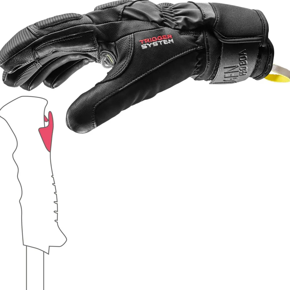 Fingerhandschuhe, die auf der Piste keinen Wunsch offen lassen – die Griffin Tune 3D Boa von Leki. Die Handschuhe kommen im stark vorgeformten, sportlichen Schnitt daher und bringen Deine Hände direkt in eine gute Position, um die Stöcke zu greifen. Damit Du an diesen schnell umgreifen kannst und ein gutes Gefühl hast, wurden sie mit dem Trigger System von Leki ausgestattet. Das ermöglicht ein Einklinken an den passenden Stöcken und erzeugt in Verbindung mit dem Boa-Drehverschluss besonders starken Tragekomfort.