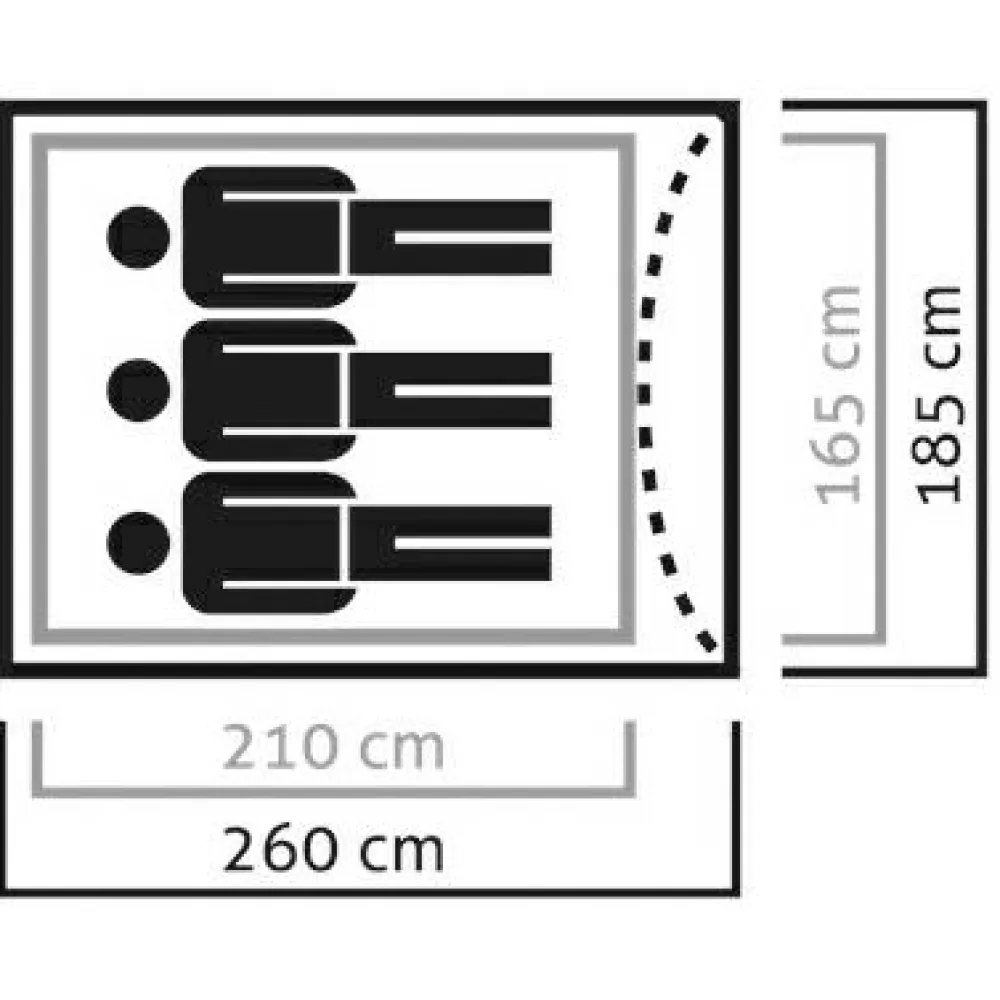 Durch das überwiegend freiliegende Gestänge kann das Außenzelt per Clips fixiert werden, was einen schnellen Aufbau garantiert. Sollte der Wind doch einmal zu stark blasen, sorgen die reflektierenden Abspannleinen für zusätzliche Stabilität. Bei Nichtgebrauch können diese ganz komfortabel mit einem Kordelverschluss zusammen gepackt werden.
