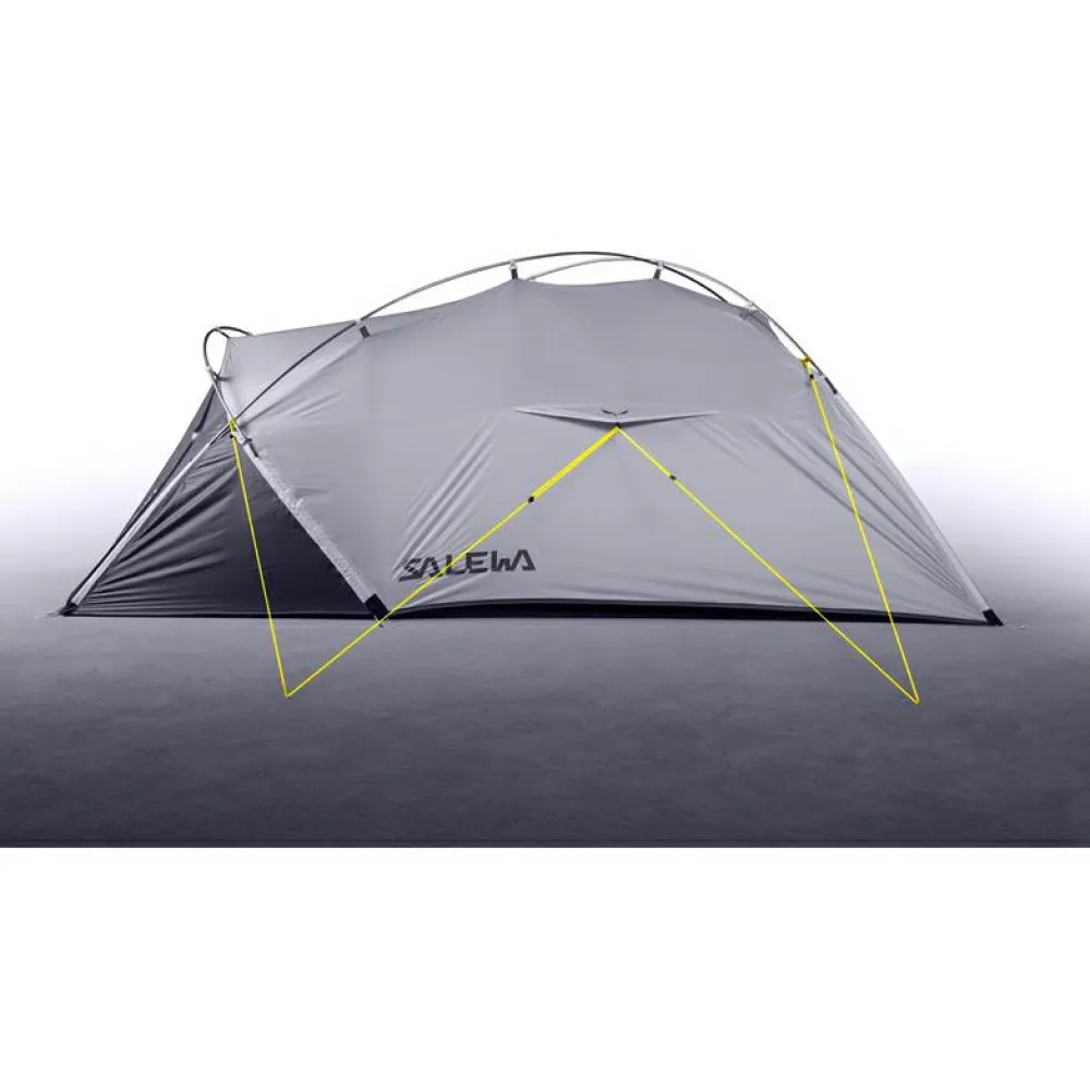 Das Litetrek Pro III 3-Personenzelt von Salewa ist ein freistehendes Zelt, dass sich durch die hohe Wassersäule des Bodens optimal ist für regenreiche Touren eignet. Dank der Polyurethan-Beschichtung erreicht der Boden eine Wassersäule von 10.000 mm. Dank des Gestängesystems steht das Zelt auch ohne Abspannleinen stabil. So lässt es sich z.B. an engen Plätzen gut aufstellen.