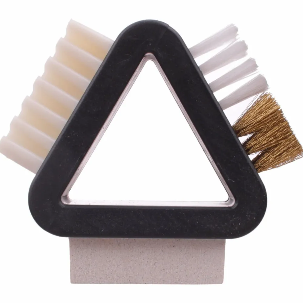 Sowohl unterwegs als auch daheim sind schmutzige Schuhe und Wanderstiefel kein Problem mehr. Die Dreiecksbürste von LOWA besteht aus einem kleinen Kunstoffdreieck mit drei verschiedenen Reinigungsflächen. Damit werden Schuhe aus Rauleder problemlos gereinigt. Die erste Seite ist mit einer Mischung aus Nylonborsten und Messingborsten versehen. Seite zwei besteht aus Gummi Krepplamellen und die dritte Seite der Dreiecksbürste von LOWA ist mit einem Reinigungsgummi bestückt.