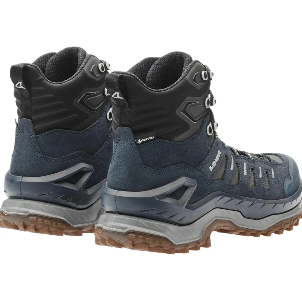 Die herstellereigene DYNAPU-Zwischensohle bietet perfekte Dämpfung, die speziell in forderndem Gelände und auf langen Touren den Tragekomfort sicherstellen. Die ebenfalls von Lowa entwickelte Terra Trac-Sohle ist ordentlich profiliert und sorgt so für besten Grip auf unterschiedlichsten Untergründen. Das Obermaterial aus Leder und Textil steht einerseits für eine traditionelle, zeitlos-schöne Optik, ist andererseits aber so robust wie funktional. Und dank der bewährten GORE-TEX-Membran ist das Material wasser- und winddicht, und bleibt dabei stets atmungsaktiv.