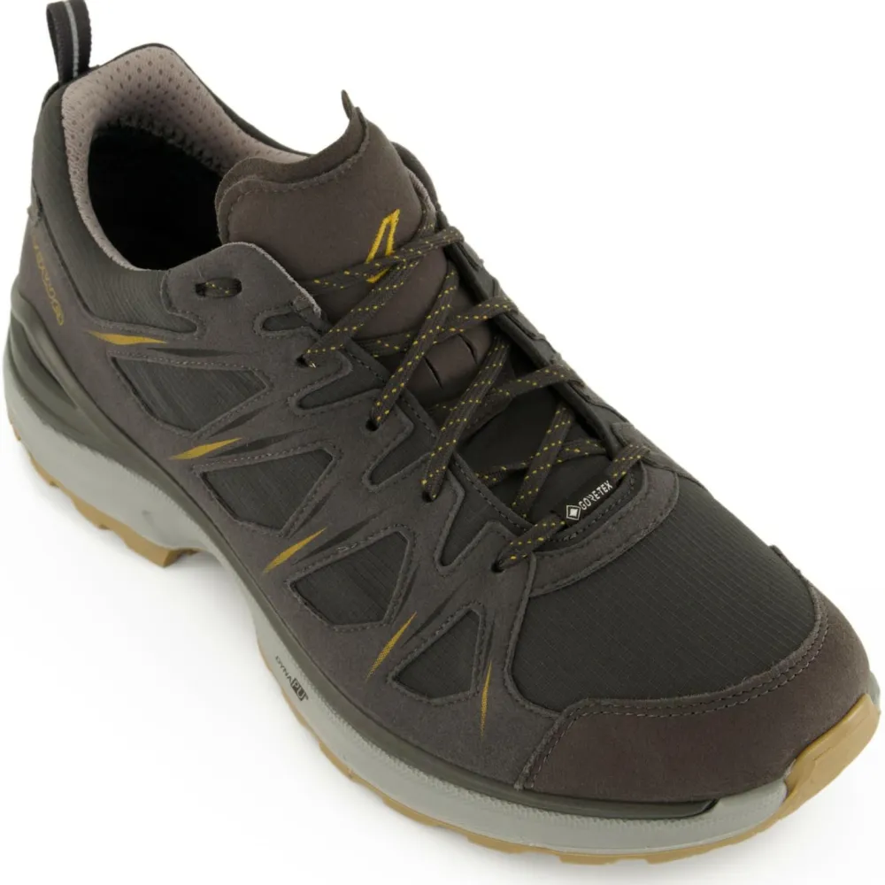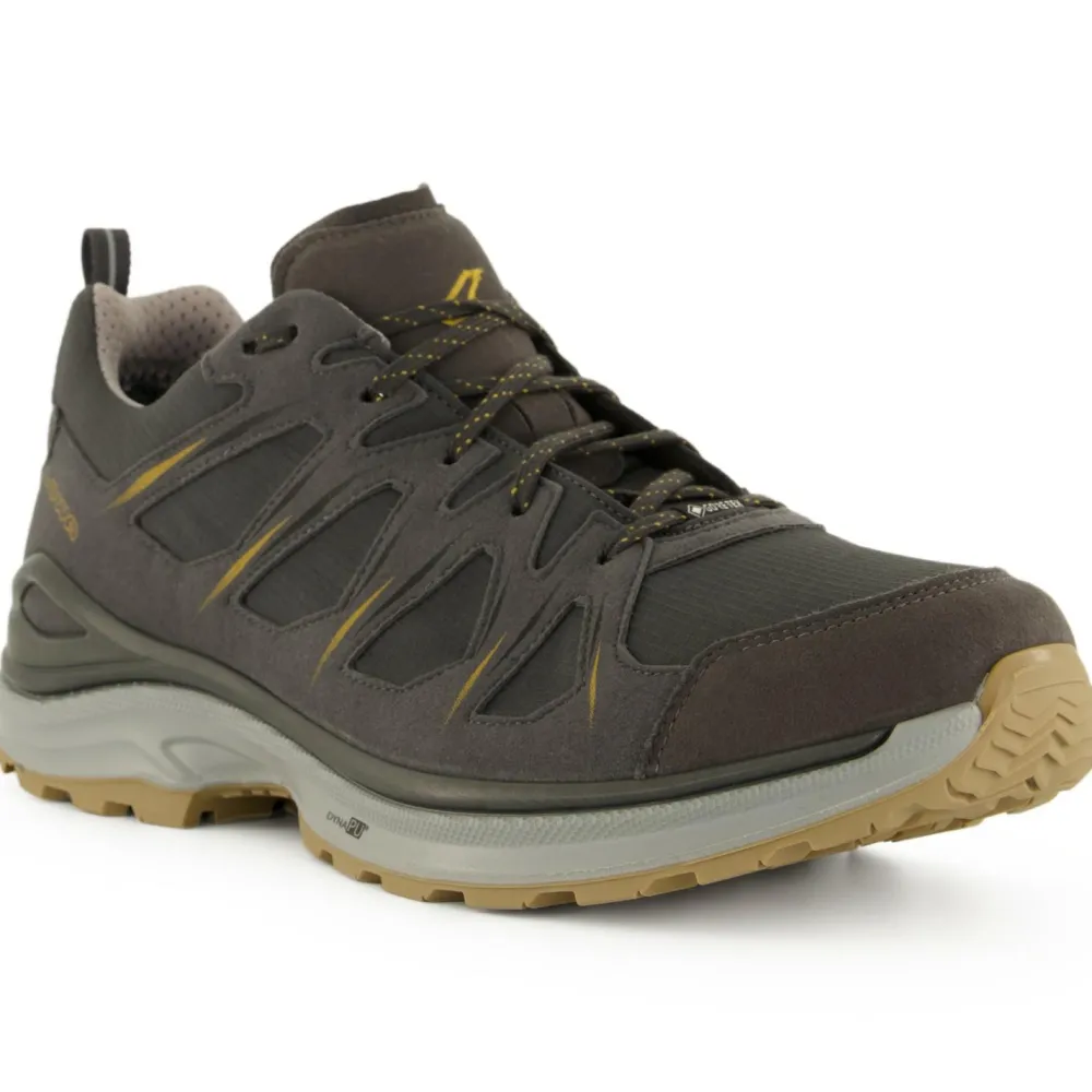 Die bayerischen Wander- und Bergschuh-Spezialisten von Lowa haben auch 1a Multisportschuhe im Programm -das beste Beispiel dafür sind die Innox Evo II GTX! Durch die bewährte GORE-TEX-Membran ist das Obermaterial sowohl wasser- als auch winddicht, bleibt dabei aber stets atmungsaktiv, so dass Du nicht fürchten musst, zu überhitzen. Und der die Sohle umspannende, den Fuß bequem einfassende und stützende Support Frame sorgt für besten Halt und Stabilität in unebenem Gelände. Die flexible Außensohle weist eine geringe Biegesteifigkeit auf, unterstützt so das natürliche Abrollverhalten des Fußes beim Gehen, und sorgt außerdem für eine gute Rückmeldung über die Beschaffenheit des Untergrundes.