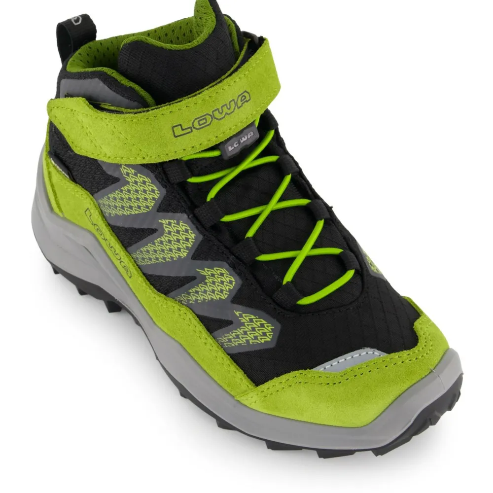 Die LOWA PU OUTSOLE sorgt für perfekten Halt und kombiniert eine leichte Bauweise mit guter Dämpfung. Der sehr flexible Aufbau ermöglicht ein weiches und natürliches Abrollen, damit sich jeder Schritt leicht und bequem anfühlt. Das robuste Obermaterial aus Textil und Veloursleder trotzt den Herausforderungen des Kinderalltags, während das atmungsaktive GORE-TEX-Futter kleine Füße trocken hält – egal, ob bei Regen oder Sonnenschein.