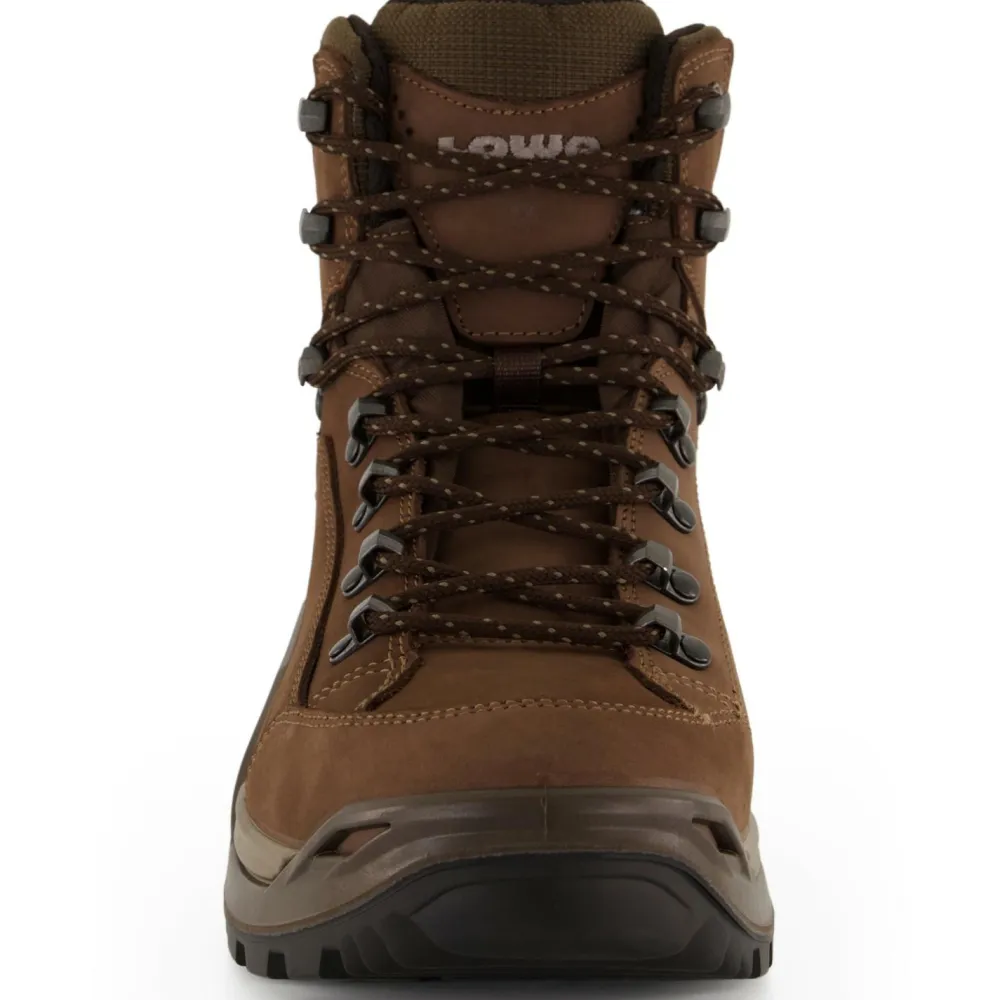 Deine Gipfel erklimmst Du mit den Wanderschuhen Renegade GTX Mid Wide von Lowa! Dank GORE-TEX Membran sind sie wasserdicht und atmungsaktiv. Das Leder als Obermaterial bietet Langlebigkeit. Mit den Verstärkungen an Fersen und Zehen hast Du sicheren Schutz im Gelände. Die Vibram Laufsohle mit ihren multidirektionalen Stollen bietet einen sicheren Grip im Gelände. Dank 2-Zonen-Schnürung kannst Du den Schuh optimal anpassen. Ein Allrounder für Tagestouren!