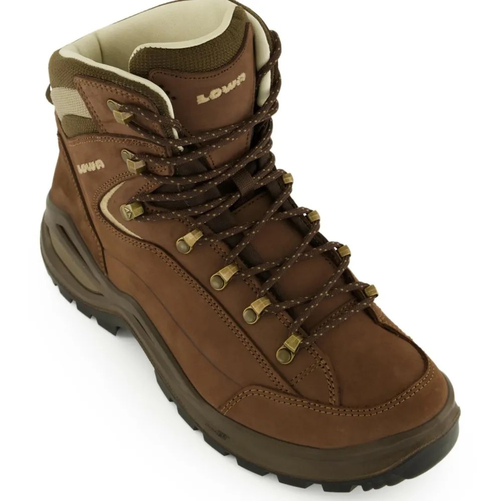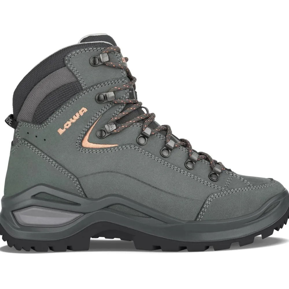 Die Bayern von Lowa sind ohne Zweifel die absoluten Experten in der Herstellung von hochwertigsten Wanderschuhen! Und davon legt auch der Women’s Renegade Evo LL Mid beredt Zeugnis ab. Der die Sohle umspannende Crossover Stability Frame sorgt für besten Halt und Stabilität, und durch die perfekt konstruierte Wasserlasche ist ein reibungsloser Einstieg möglich. Das Design des Obermaterials ist auf die Minimierung von Nähten ausgelegt, sodass potenzieller Druckstellenbildung von vorneherein nach besten Möglichkeiten ein Riegel vorgeschoben wird. Das alles sorgt für hohen Tragekomfort, wie er einem zeitgemäßen Wander- und Trekkingschuh ansteht! Auch optisch kommt er behutsam modernisiert daher, so sind beispielsweise die Schnürsenkelhaken am Schaft eckig gehalten, was die futuristische Form des Stability Frame aufgreift.