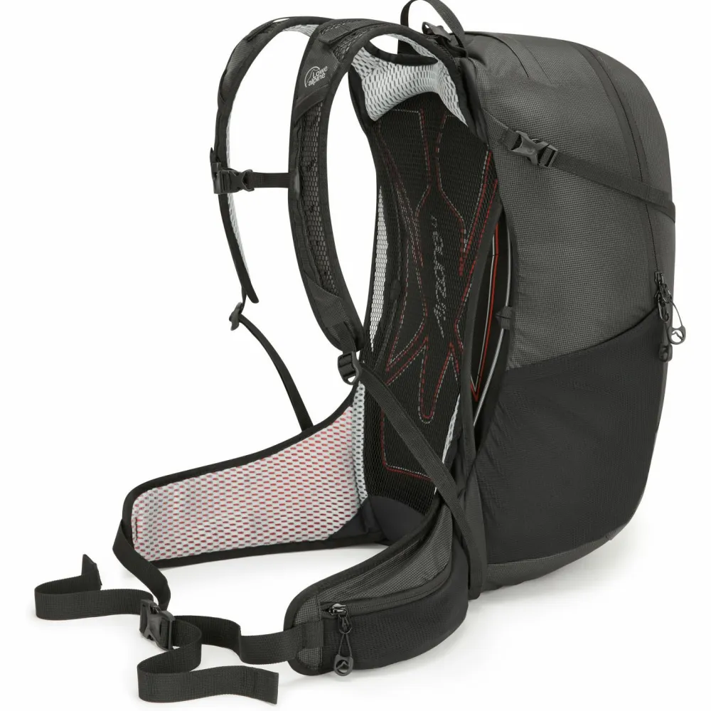 Der Airzone Active 26 Rucksack von Lowe Alpine ist ideal für Wanderungen an warmen Tagen, wo Dir der Schweiß den Rücken runterläuft. Denn dank der Mesh-Einsätze am Rücken und den Schulterträgern ist der Rucksack super angenehm zu tragen. Und weil Lowe Alpine weiß, wie lästig es ist, ständig nach hinten zu greifen oder den Rucksack gar abstellen zu müssen, um zu trinken, ist das Hauptfach mit einer 3l-Trinkblase kompatibel.