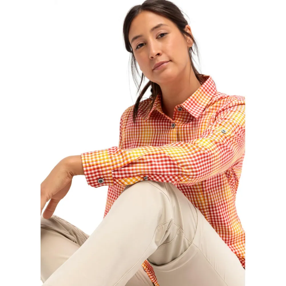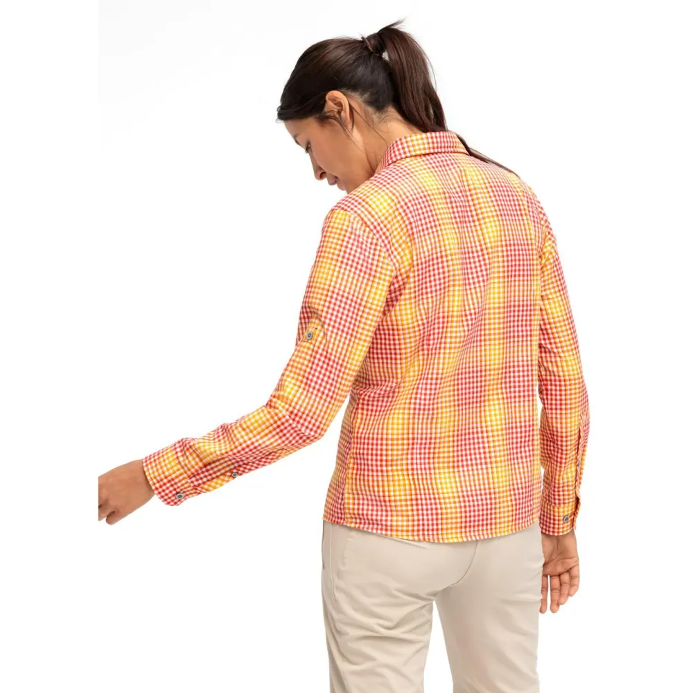 Die funktionale Bluse Women’s Nanni von Maier Sports ist die ideale Begleiterin für all Deine Outdoorabenteuer. Sie wartet mit praktischen Funktionen auf und sieht dabei absolut modisch aus. Besonders das karierte Muster verleiht beim Wandern, Reisen und in der Freizeit stets eine gute Figur. Die langen Ärmel lassen sich bequem krempeln, wodurch die Damenbluse lässiger wirkt. Zudem überzeugt sie mit ihrem schnelltrocknenden Material und ihrer optimalen Passform.