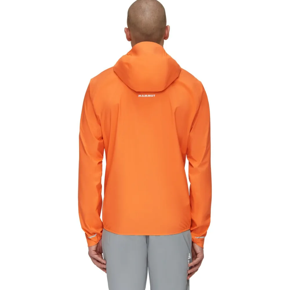 Gleichzeitig lässt das funktionelle Gewebe die Feuchtigkeit vom Körper zügig nach außen entweichen. Die sportliche Regenjacke verfügt über wasserabweisende Reißverschlüsse und ist mit einer Brusttasche und elastischen Ärmelabschlüssen ausgestattet. Ultraleicht und stretchy trägt sich die Mammut Jacke perfekt beim Trailrunning und anderen rasanten Outdoorsportarten.