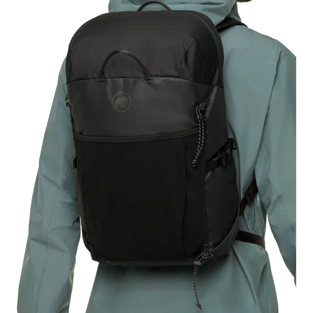 Der Alto 22 Daypack von Mammut kommt mit wasserfesten Materialien daher und bietet so einen verlässlichen Schutz vor Regenschauern, wenn Du mit dem Bike oder zu Fuß in der Stadt unterwegs bist. Die abnehmbare Fronttasche aus Mesh-Gewebe bietet zusätzlichen Platz für wichtige Gegenstände. Seitlich ist ein Reißverschluss, sowie eine Halterung für eine Trinkflasche integriert.