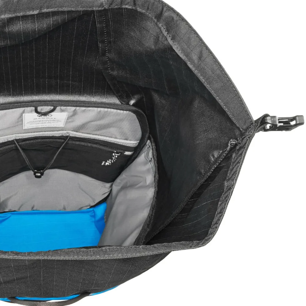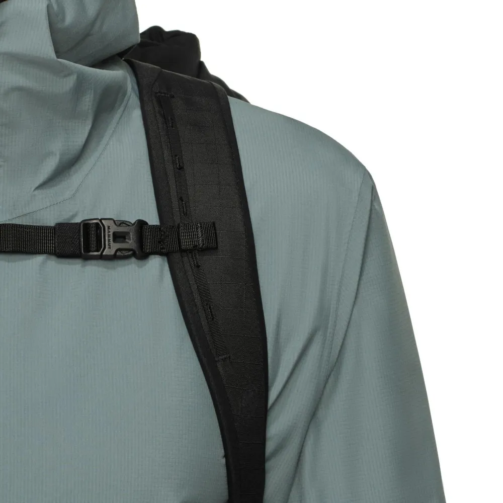 Der Alto 34 Daypack von Mammut kommt mit wasserfesten Materialien daher und bietet so einen verlässlichen Schutz vor Regenschauern, wenn Du mit dem Bike oder zu Fuß in der Stadt unterwegs bist. Die abnehmbare Fronttasche aus Mesh-Gewebe bietet zusätzlichen Platz für wichtige Gegenstände. Die Materialien sind zum Großteil recycelt, wodurch der Rucksack ein klares Zeichen für Nachhaltigkeit setzt.
