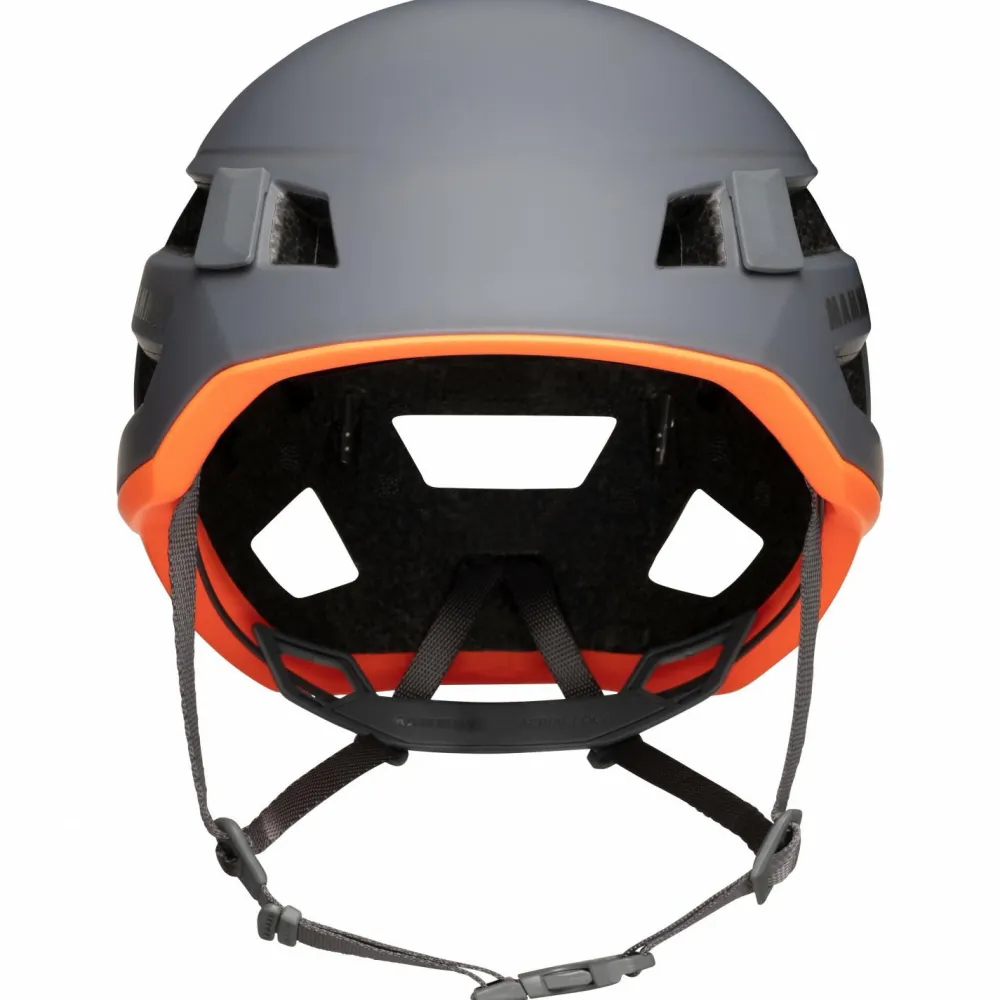 Für den Einsatz am Fels wurde der Crag Sender Helmet von Mammut entworfen. Dieser leichte und bestens belüftete Kletterhelm überzeugt dabei nicht nur durch seinen guten Komfort, sondern bringt vielmehr auch ein hohes Maß an Sicherheit mit. Durch die Inmoldbauweise ist er robust und leichtgewichtig zugleich. Verstärkungen aus Kevlar sorgen außerdem dafür, dass er besonders widerstandfähig ist und auch mit starken äußeren Einwirkungen gut klarkommt.Durch den praktischen Einstellmechanismus am Hinterkopf sowie den vollverstellbaren Kinnriemen sitzt der Helm immer optimal am Kopf und wackelt nicht. Durch strategisch angebrachte Polsterungen wird zusätzlich die Bildung von Druckstellen vermieden. Gerade an warmen Tagen macht sich auch die großzügige Belüftung positiv bemerkbar. Gleich mehrere große Lüftungsöffnungen, die mit einem Belüftungskanal verbunden sind, ermöglichen hier einen schnellen Temperaturausgleich.