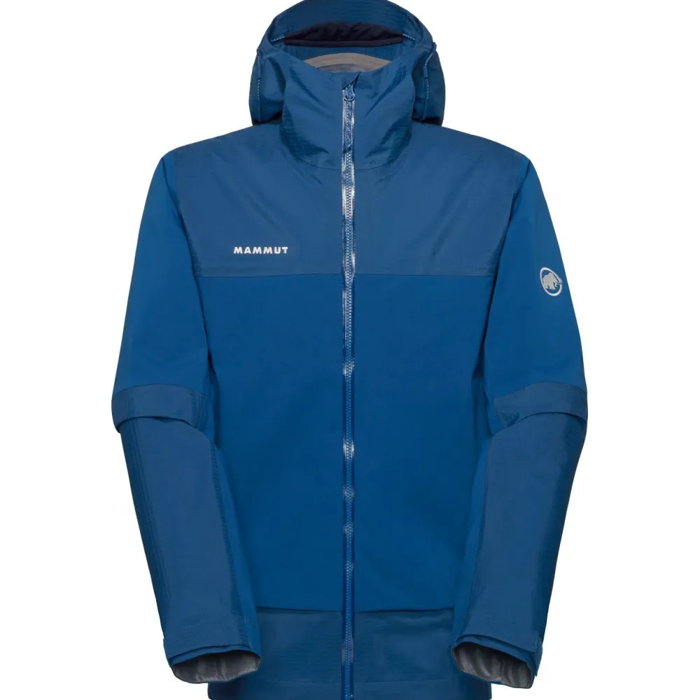 Die Regenjacke trägt sich bequem mit ergonomisch vorgeformten Ärmeln und versetzten Schulternähten. Zwei Fronttaschen mit wasserabweisenden Reißverschlüssen und extra Taschenfalten bieten genügend Stauraum. Die Mammut Hardshelljacke wird umweltfreundlich gefertigt und ist bluesign und Fair Wear zertifiziert. Zudem wird sie größtenteils aus recycelten Rohstoffen hergestellt.