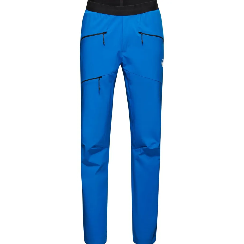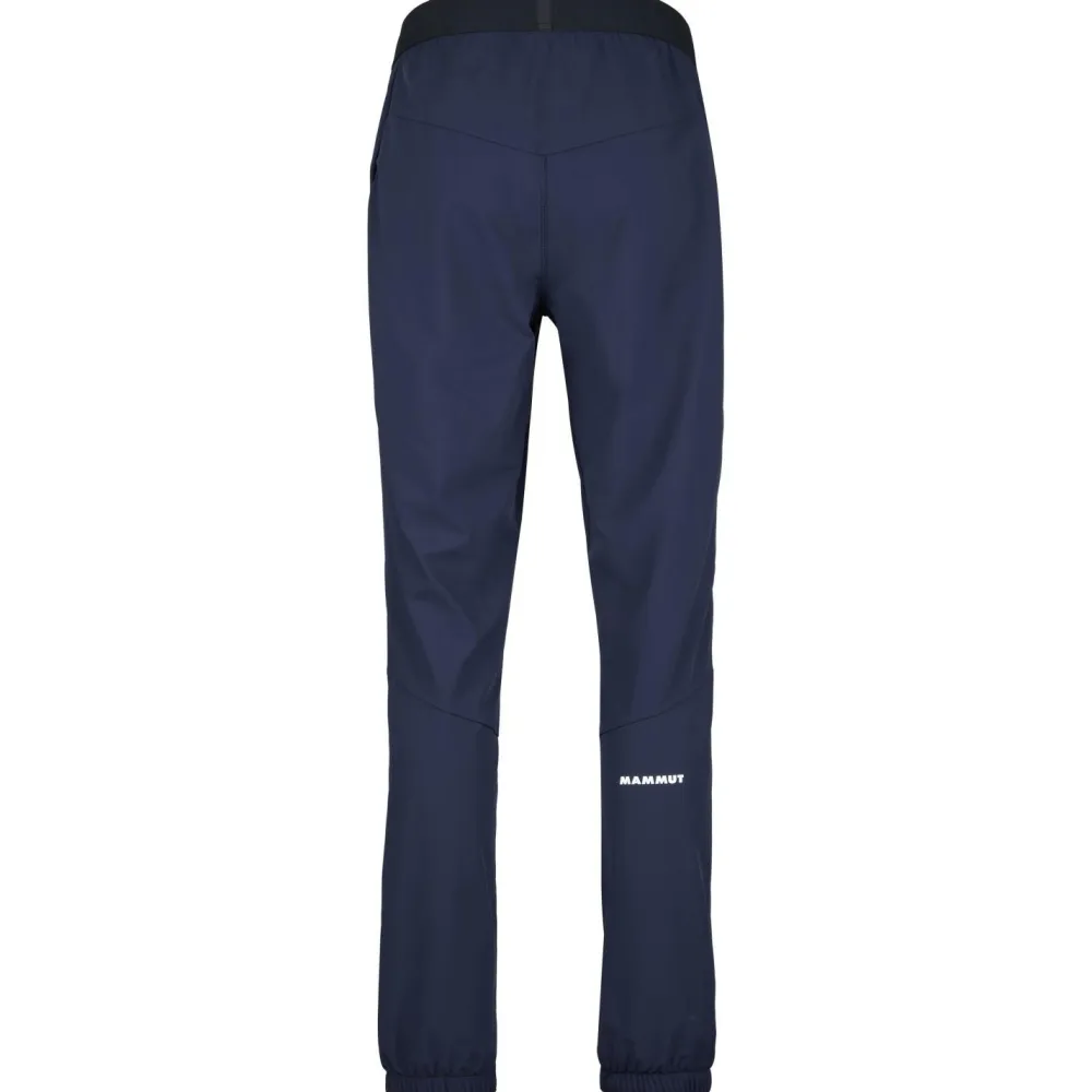 Mammut stattet die Eiger Nordwand Light Softshell Pants mit regulierbarem und elastischem Hosenbund aus und sorgt mit zwei Seitentaschen und einer extra Beintasche für genügend Stauraum. Dabei sind die Taschen mit Reißverschluss ausgestattet und so platziert, dass sie auch mit angelegtem Klettergurt stets bequem zu erreichen sind.