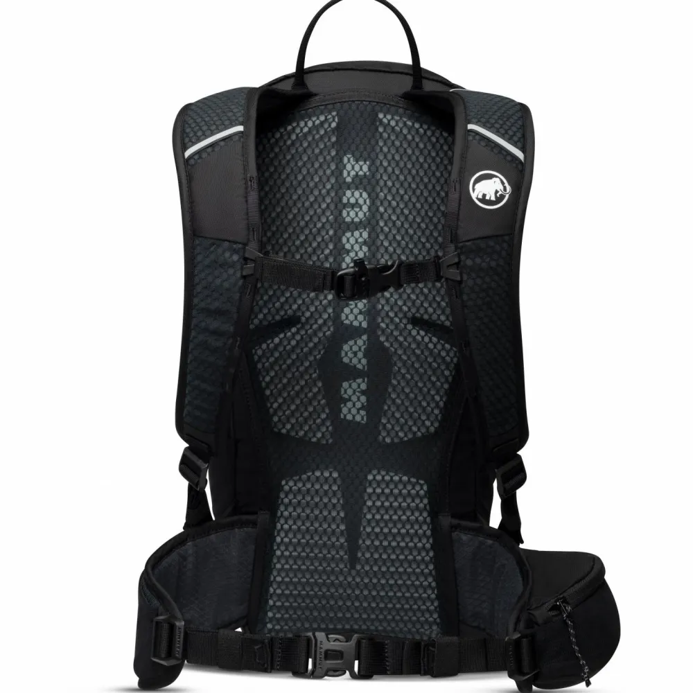 Bist Du gerne flott unterwegs, dann ist der Wanderrucksack Lithium 15 von Mammut der richtige Partner! Einen hohen Tragekomfort genießt Du dank gepolsterten Schulterträgern und weichem Hüftgurt. Für eine gute Belüftung am Rücken sorgen Luftkanäle im Schaumstoff. Stauraum für Verpflegung und Equipment hast Du im Hauptfach. Auf die seitlichen Netztaschen kannst Du auch im Gehen zugreifen. Ideal für tempoorientierte Wanderer!
