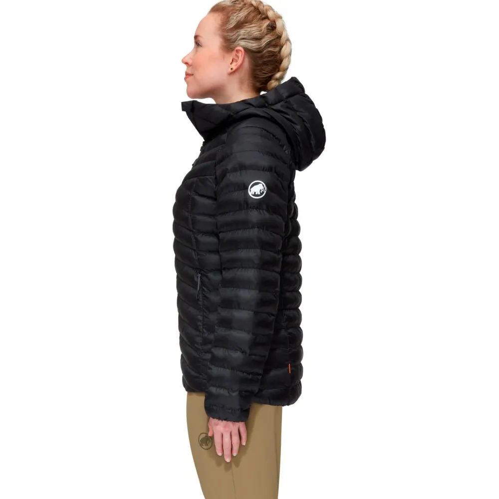 Die Women’s Albula Insulation Hooded Jacket von Mammut setzt ein deutliches Zeichen für die Nachhaltigkeit, denn sie besteht komplett aus recycelten Fasern. Außenstoff aus Recyclingpolyester, Futter aus recyceltem Polyamid. Die Kunstfaserfüllung besteht aus recycelten PET-Flaschen und ist die vegane und pflegeleichte Alternative zur Daune. Alles in allem kannst Du Dich bei den hochwertigen Materialien auf eine hervorragende Wärmeleistung bei niedrigen Temperaturen freuen. Eine verlässliche Imprägnierung weist zudem leichten Regen- und Schnee ab.