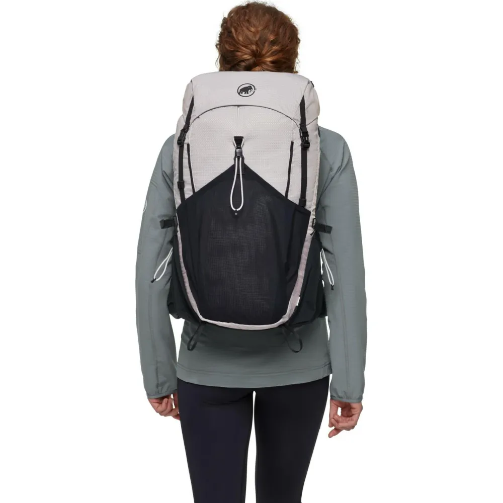 Tollen Tragekomfort und erstklassige Belüftung am Rücken ermöglicht der Women’s Ducan 26 Wanderrucksack von Mammut. Der leichte Daypack bietet 26 Liter Stauraum, ist kompatibel für Trinksysteme und verfügt zusätzlich über zwei seitliche Netztaschen. Mit seiner Kombination aus Metallrahmen und Netzrücken bietet er optimale Vorraussetzungen für direkte Kraftübertragung und Luftzufuhr am Rücken. So ist der Rucksack beim Wandern kaum zu spüren. Der Women’s Ducan 26 ist mit einem komfortablen und gut belüfteten Tragesystem ausgestattet und hat eine extra Tasche am Hüftgurt fürs Smartphone. Regenhülle und Halterungen für Trekkingstöcke gehören ebenfalls zum Lieferumfang. Ob Ausflug, Tagestour oder Klettersteig – der Mammut Rucksack ist Allzeit bereit.
