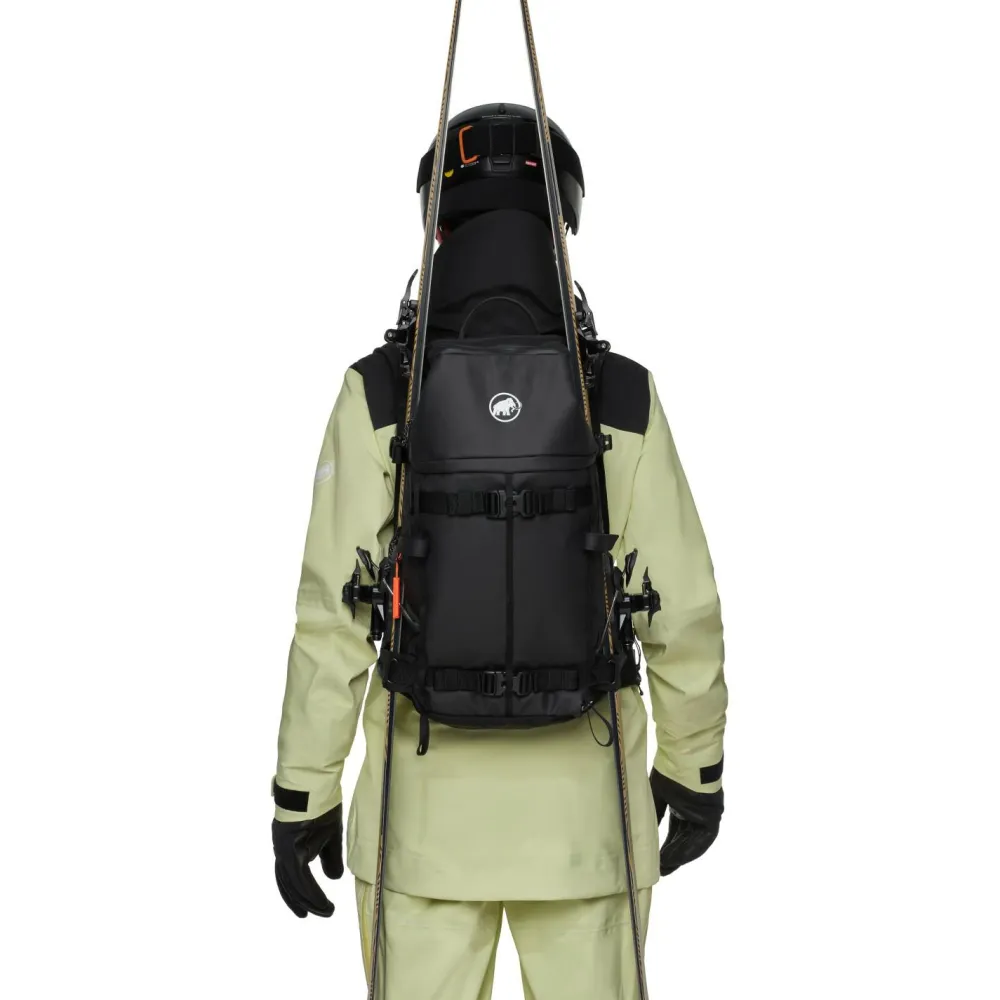 Der Women’s Nirvana 28 Skitourenrucksack von Mammut ist bereit für tiefen Pulverschnee und bietet ein geräumiges Innenleben für alle wichtigen Gegenstände auf Tour. Mit seinem Rückenzugriff kannst Du auf alle transportierten Utensilien direkt zugreifen, was Dir ein enorm komfortables Organisieren des Rucksackinhalts ermöglicht. Wenn es eine schwere und steile Passage zu überwinden gilt, können Skier oder Snowboard kurzerhand am Rucksack befestigt werden und Du legst die nicht befahrbaren Meter zu Fuß zurück.