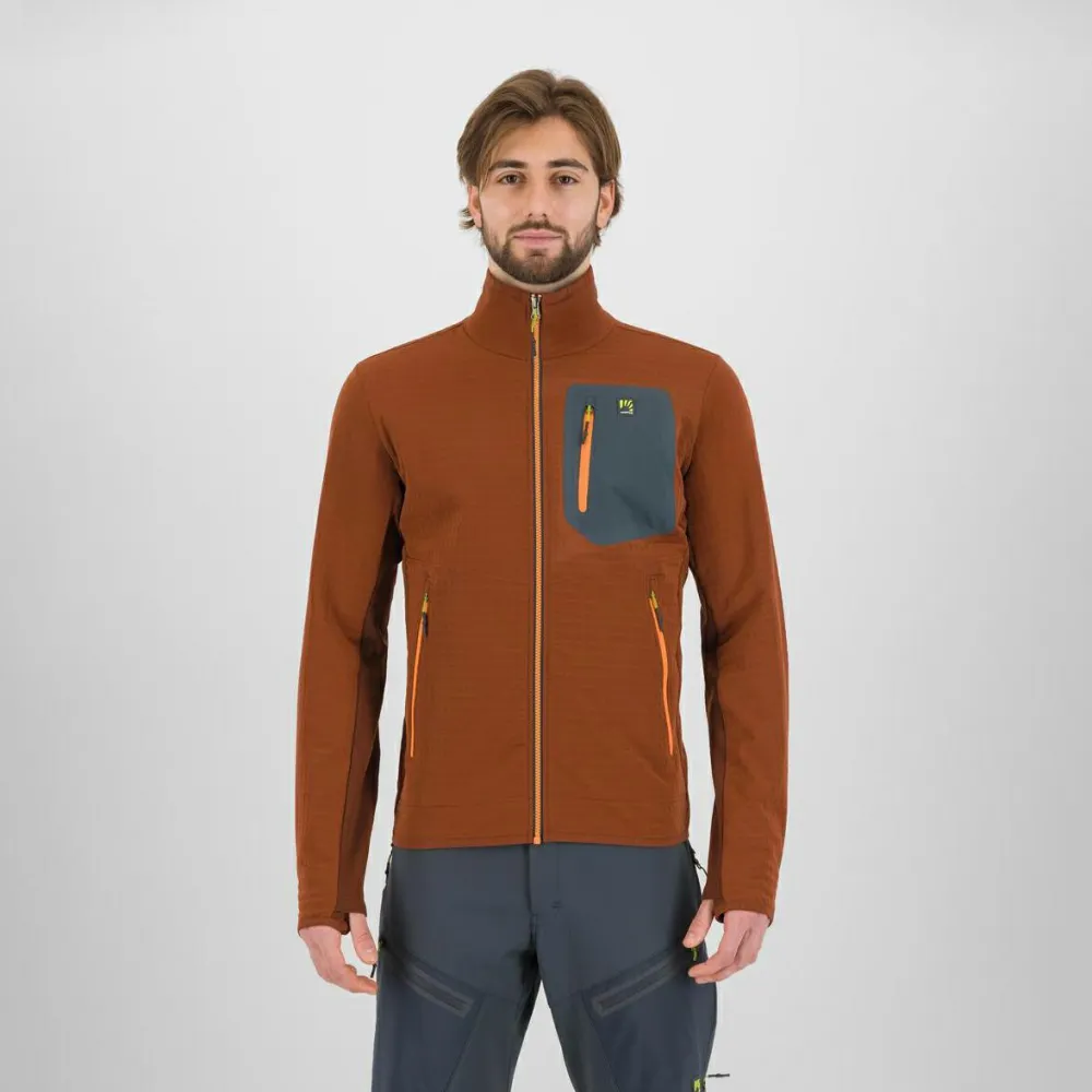 Die Marmolada Fleece von Karpos ist eine komfortable und rundum bergtaugliche Fleecejacke für den Winter. Sie ist aus wasserabweisendem Material gefertigt, dass innen mit Gaze für optimale Wärmeisolierung und außen mit Verstärkungen für abriebfeste Robustheit sorgt. Die Seiten und Unterarme bestehen aus leichten und elastischen Materialeinsätzen, die eine verbesserte Atmungsaktivität und Passform beisteuern. Für den jederzeit guten Sitz der Marmolada Fleecejacke sorgen auch die Daumenschlaufen an den Ärmelenden. Als weitere Details kommen die beiden Reißverschlusstaschen vorne und die Brusttasche mit Reißverschluss hinzu, sodass alle unterwegs benötigten Kleinigkeiten jederzeit griffbereit sind.