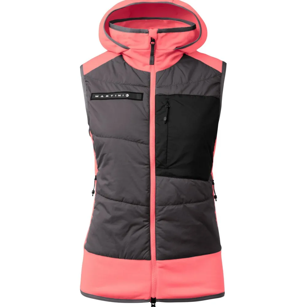 Sportliche und sehr komfortable Winterbegleiterin: die Women’s Yalca Hybrid Vest Primaloft von Martini! Diese Kunstfaserweste besteht aus recyceltem Nylon-Oberstoff mit Stretch-Einsätzen und wasserabweisender DWR-Imprägnierung, bauschkräftiger Primaloft-Füllung und anschmiegsamem Nylon-Innenfutter. Dieser intelligente Gewebemix sorgt für umfassenden Schutz vor Wind und Wetter bei guter Atmungsaktivität, schnellem Feuchtigkeitstransport und rascher Trocknung.