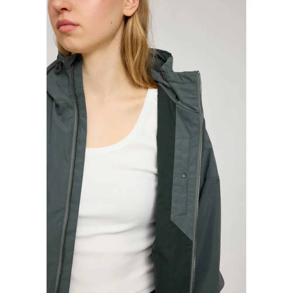 Draussen kann das Wetter so schmuddelig sein wie es will, mit der Women’s Light Jacket Recycled Fabric Freizeitjacke von Mazine gibt es kein schlechtes Wetter!Die modische Hardshelljacke ist wasserabweisend und ein toller Begleiter für jeden Tag. Die elastischen Bündchen sorgen dafür, dass kein Wasser in den Ärmel läuft und der Kordelzug an Saum und Kapuze sorgt für den individuell optimalen Tragekomfort. Ausreichend Stauraum bieten eine Innentasche und zwei bequeme Seitentaschen. Der Umwelt zuliebe besteht die Jacke aus einem Großteil aus recyceltem Polyester mit Bio-Baumwolle im Innenfutter.
